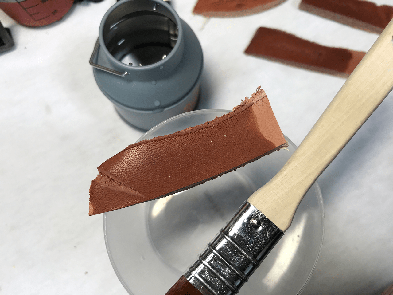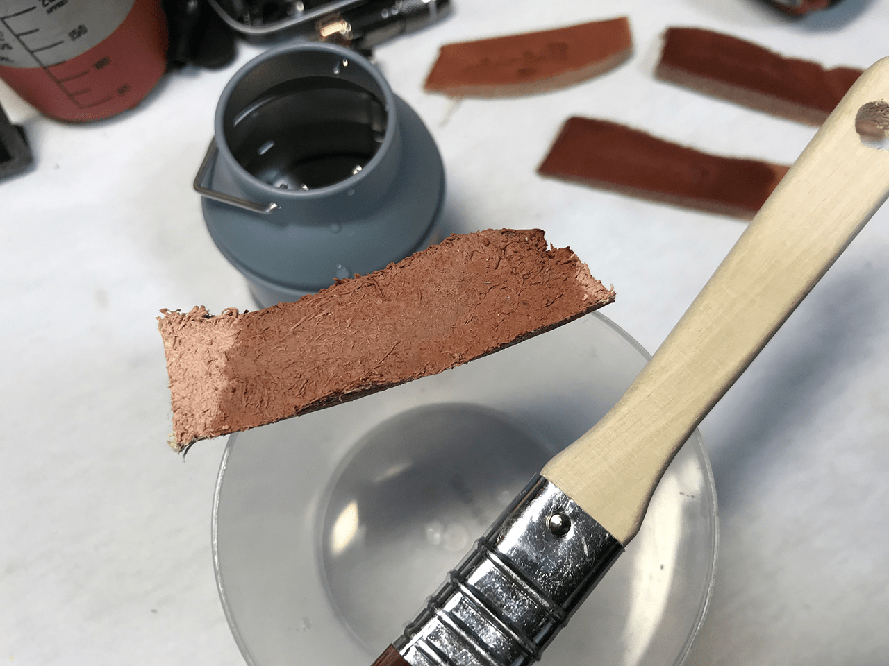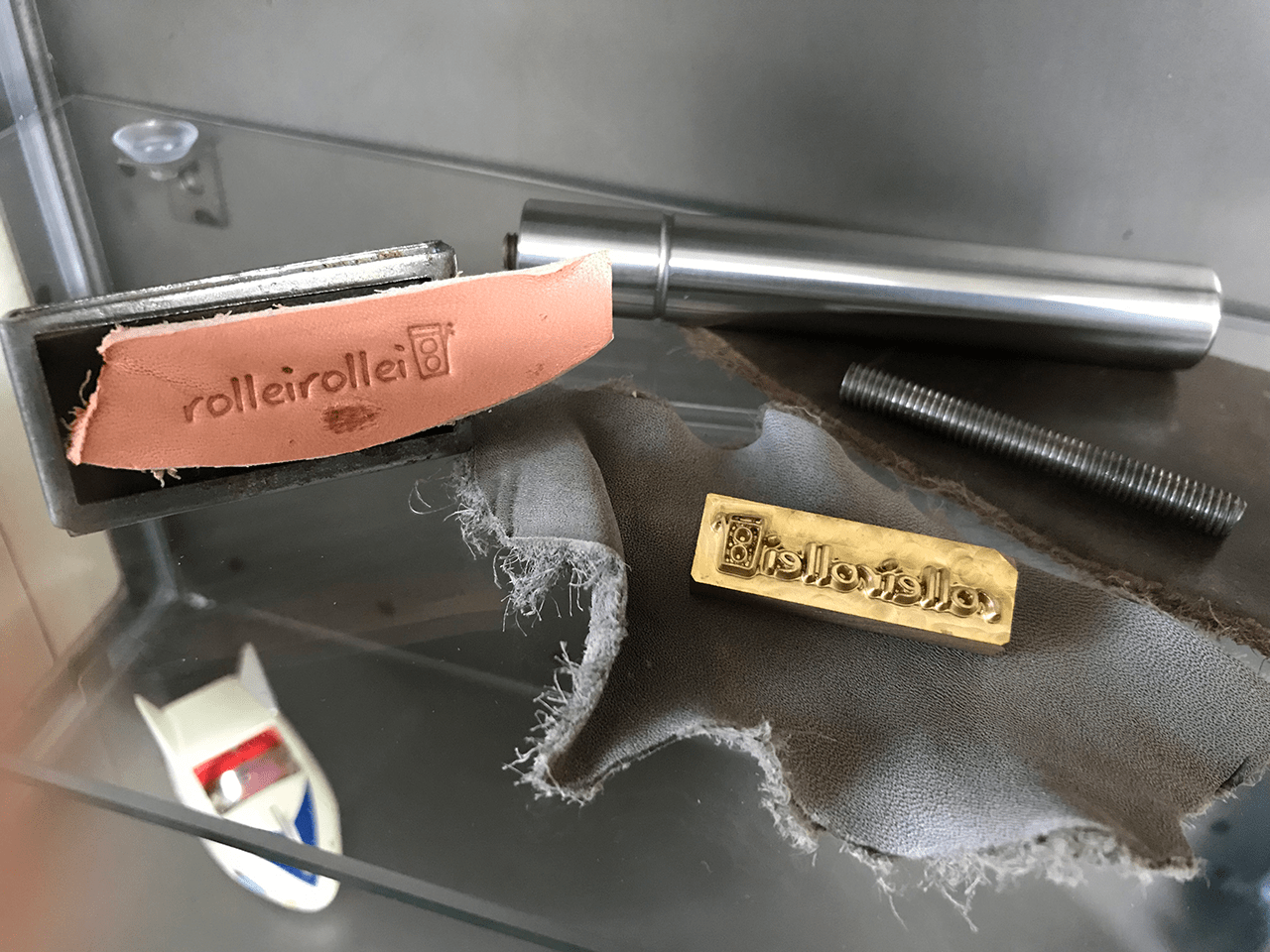 『オイル処理されていないヌメ革に少し水分を含ませたあと刻印できます』