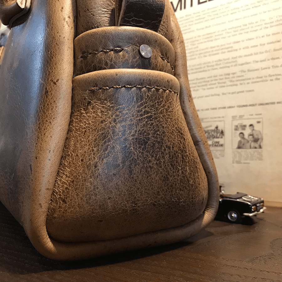 ↓ 革の表情が前と後ろで違うのがこのカバンの特徴ですね。