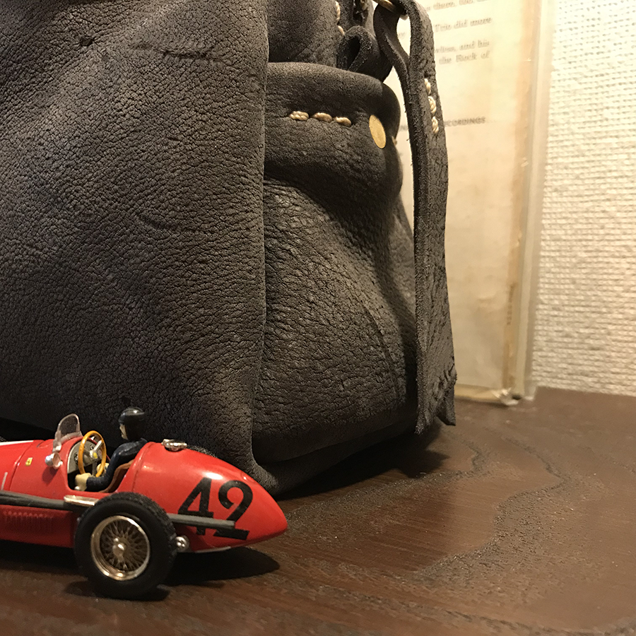 ↓ 今回はkudu革の吟面をハンドバッグの表面にしてあります。