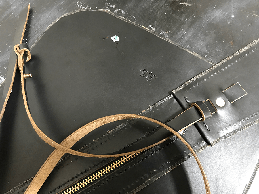 半裁のレザーから肩掛けを取ると直線を切るので「革の端が使えなくなるからもったいない」>.<“
