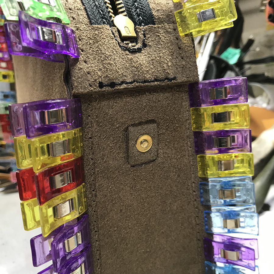 ↓ 肩ひもは完成後に取り付ける方が一般的らしいですが失敗したくないので最初にリベット付けします