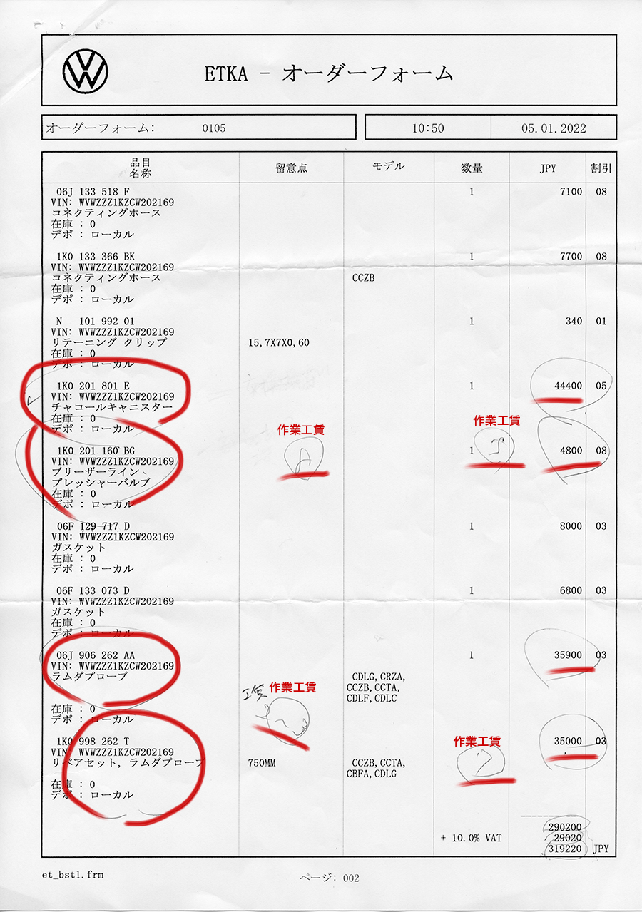 工賃とか部品の金額とか、、、