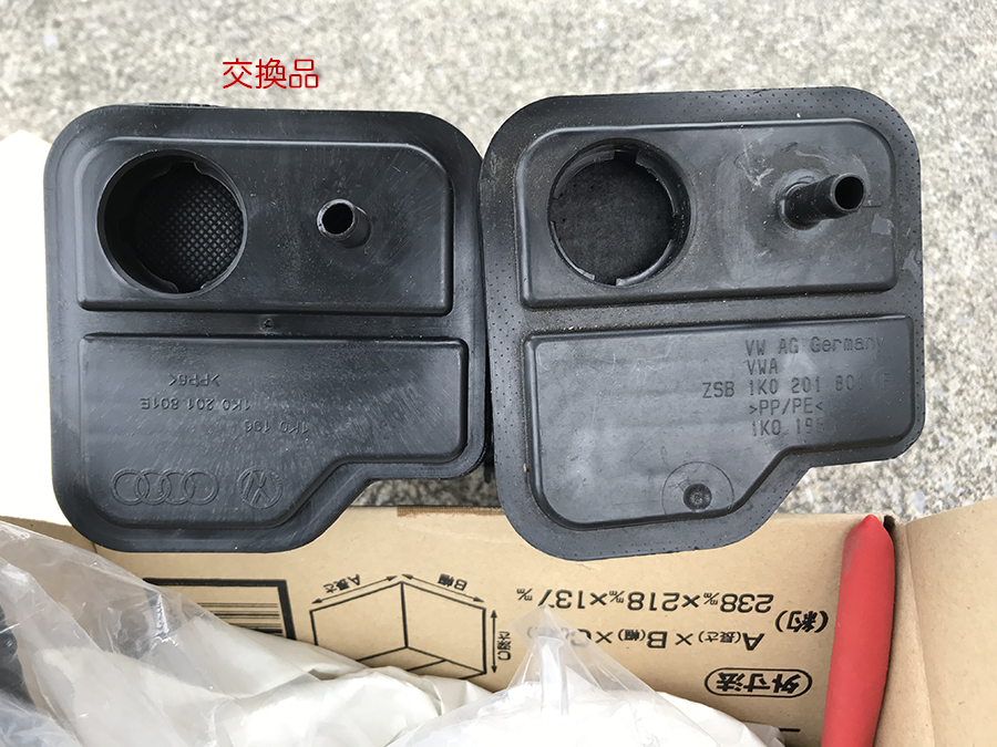 ↓ 右側がアマゾン購入のチャコールキャニスター(ホース付き)です