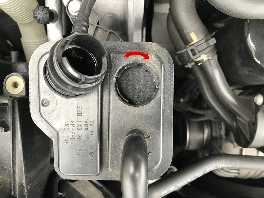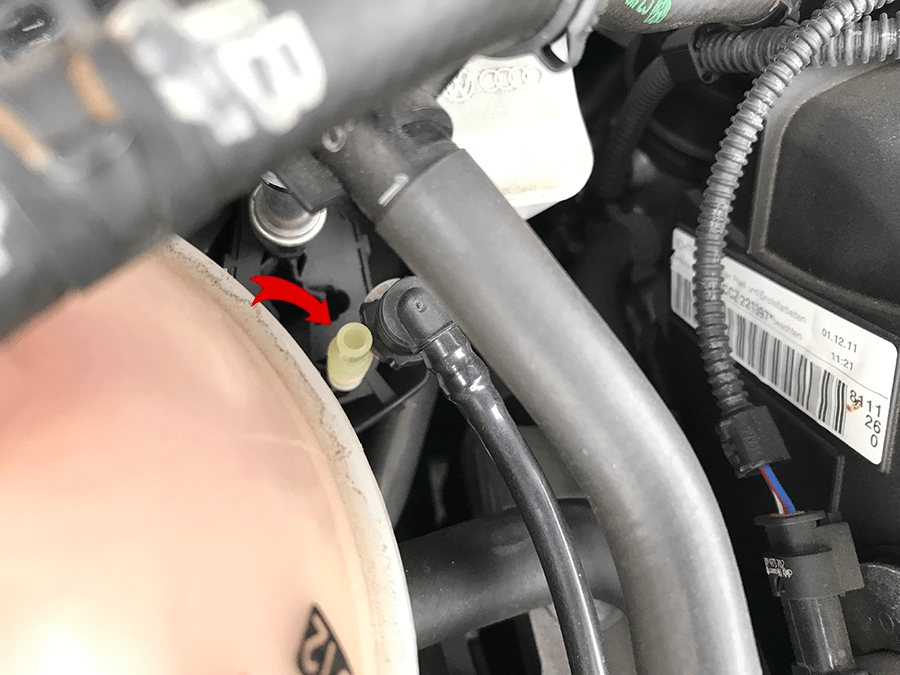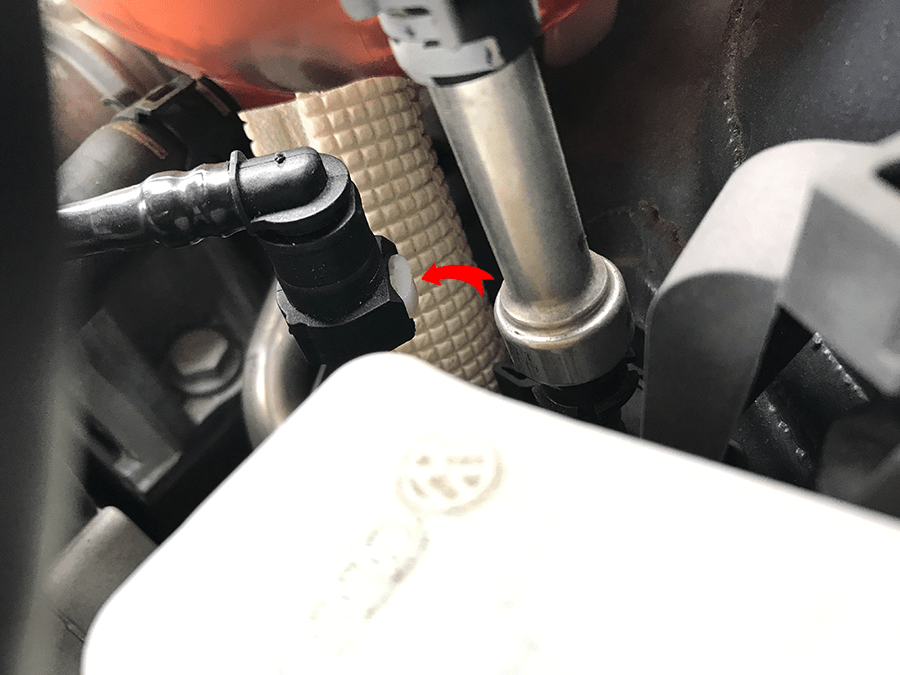 GOLF6 GTIは青い矢印のホースが抜けない専用部品になるそうです。
