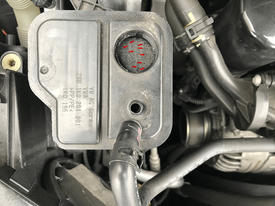 ↓ GOLF6のチャコールキャニスターを調べてみると「活性炭が漏れ出して他のパーツの悪影響を及ぼす」ことがあるそうです。 取り外して中を覗いて(拡大)みると確かに細かな活性炭が見えます。細かな活性炭がノンリターンバルブの方に入り不具合が起きるらしいです。