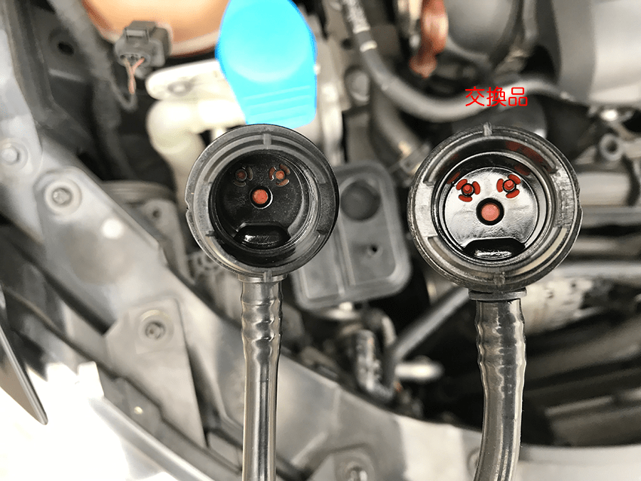 ↓ 運転席側のホースキャップの比較です