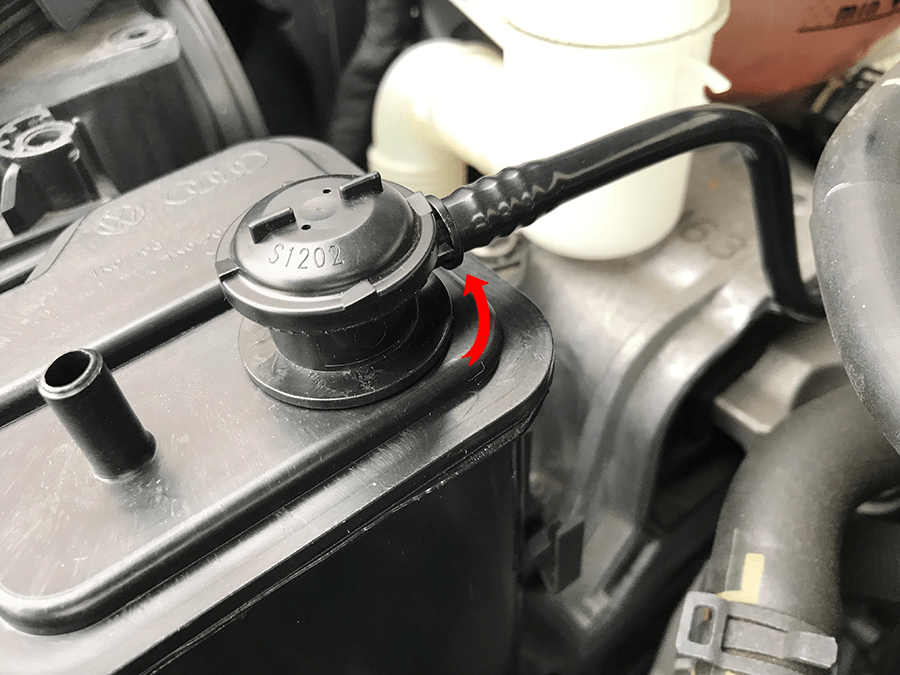 ノンリターンバルブはGOLF6 GTIはメカニックさんしか交換できない?と発見しました。 後で画像から判断できますが「右側のホースが抜けない」構造のGTI専用部品です。