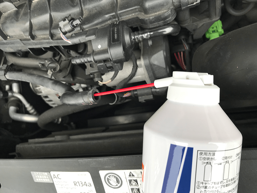 ↓ 今回はノンリターンバルブの交換ができませんがホースの中だけエアースプレーでキレイにします