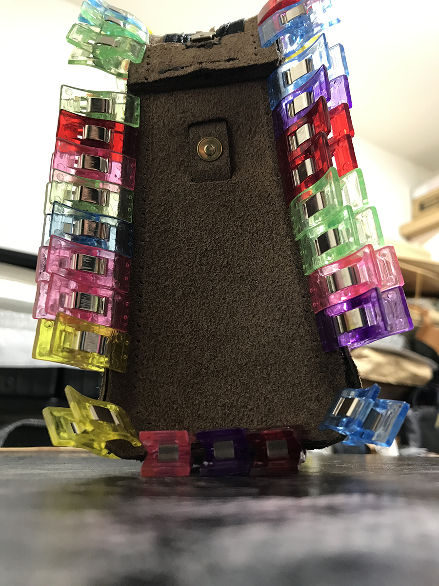 今回作った奥のバッグも使ってみてから必要な箇所に穴を開けるらしい、、、^^;