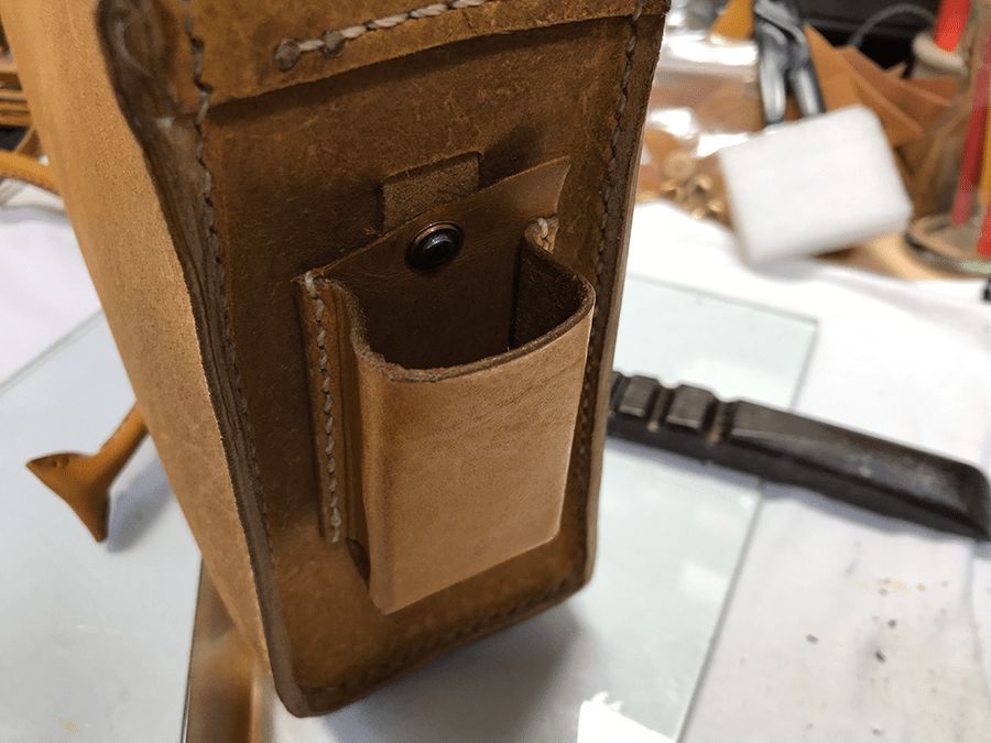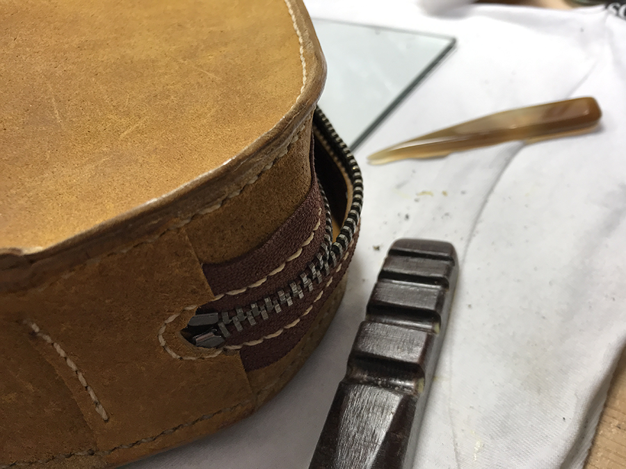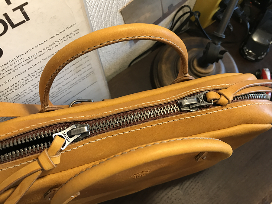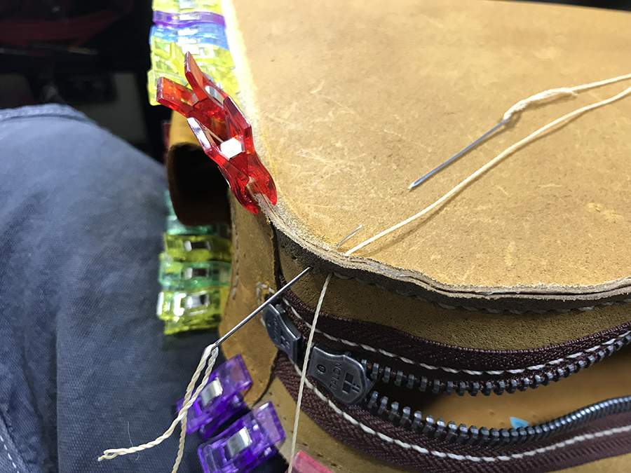 ↓ 全て手縫いですがサッビアレザーは硬めなので少し苦労します。