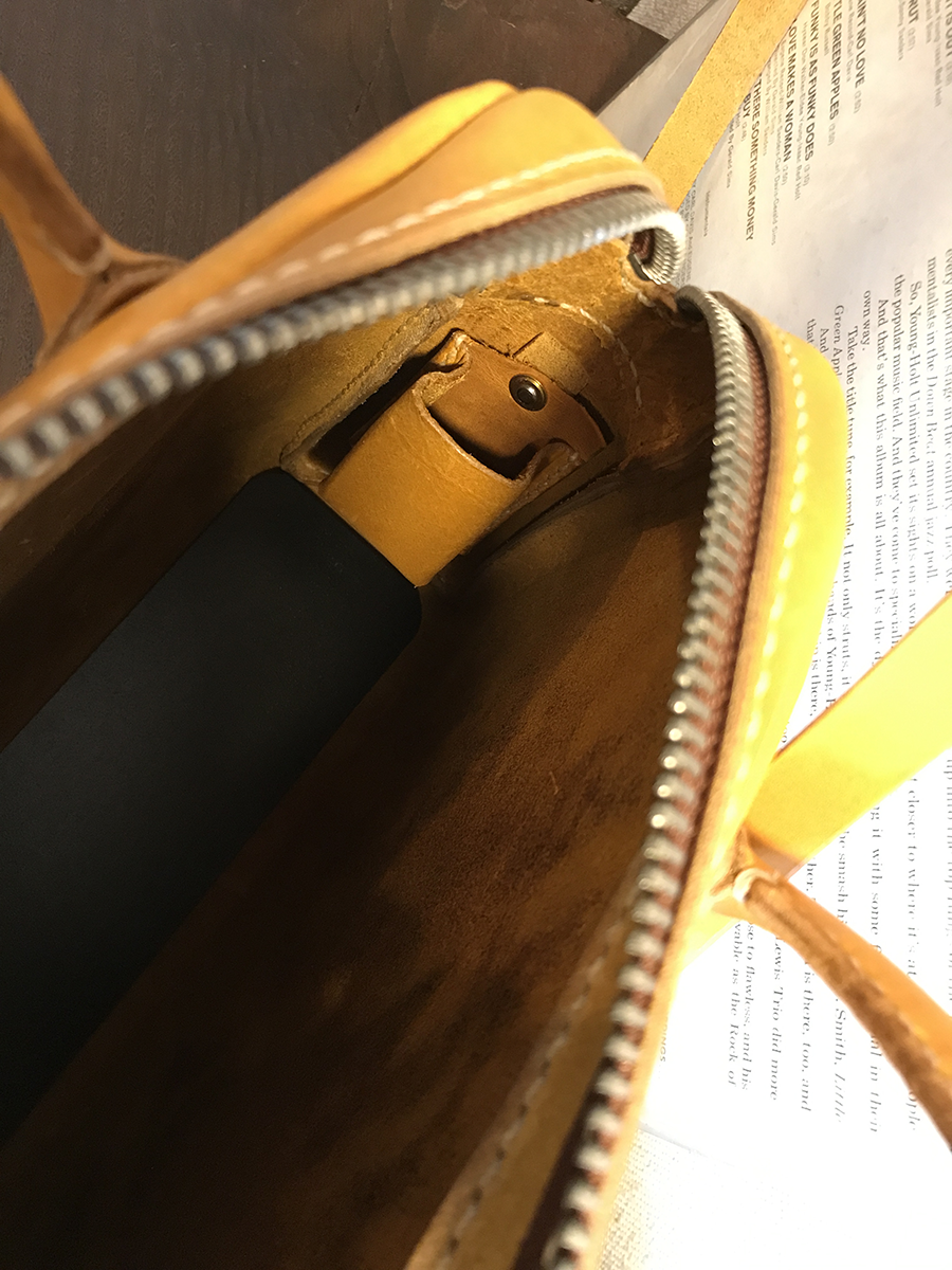 取り付け位置は肩紐のリベットに合わせてあるので余計な縫い付けがなくてスッキリ。