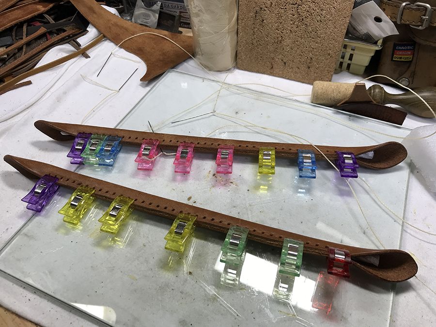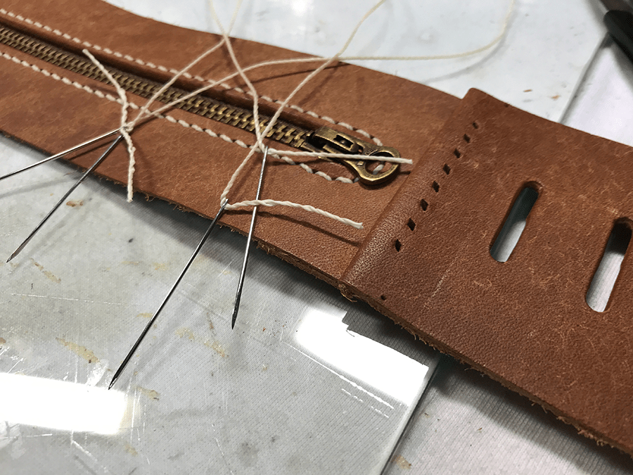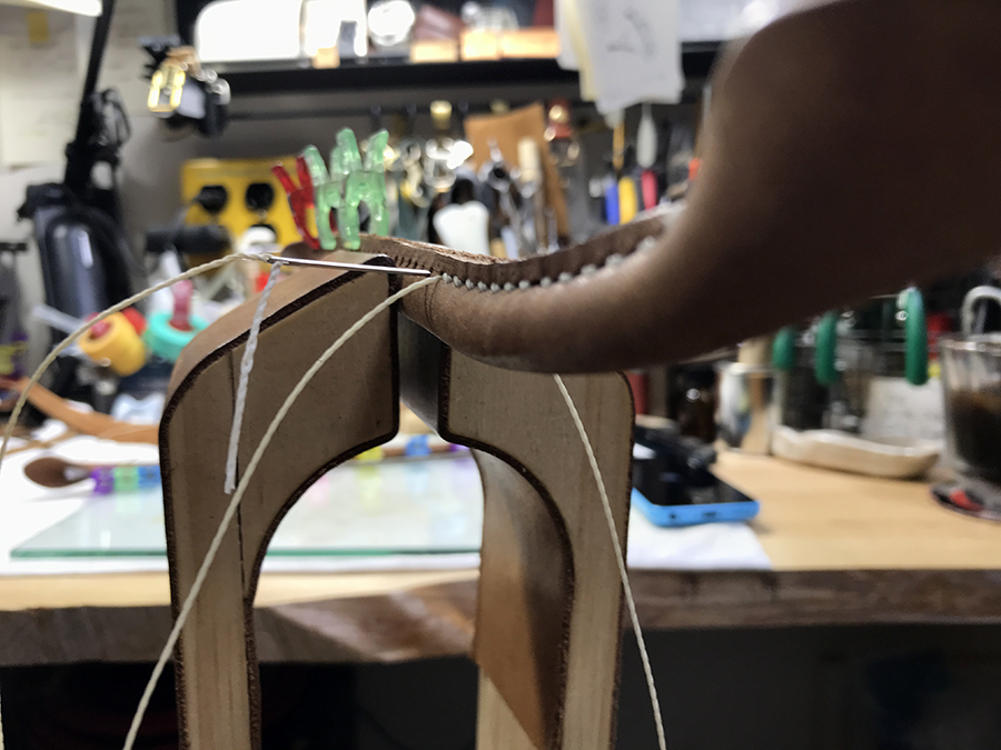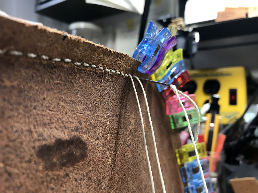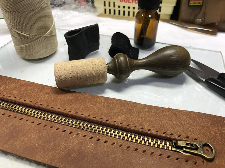 ↓ 全て手縫いで力を入れますので裏漉きは薄すぎないようにしてます