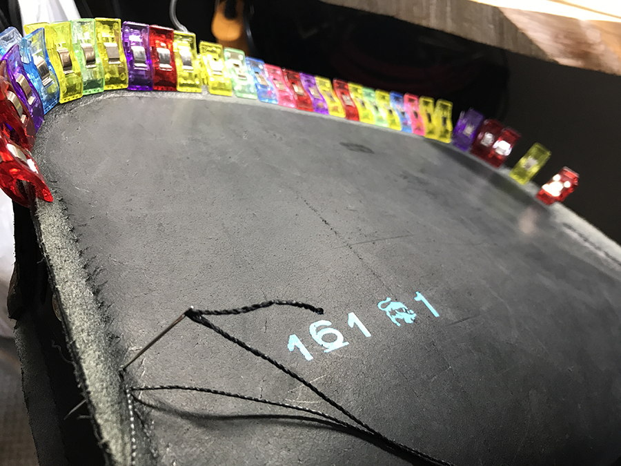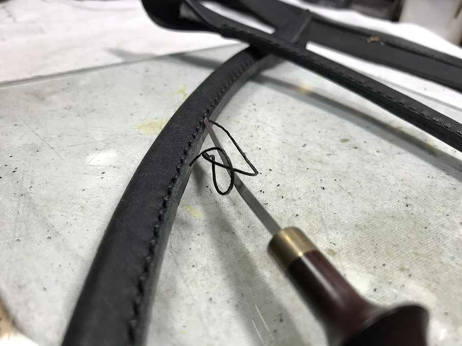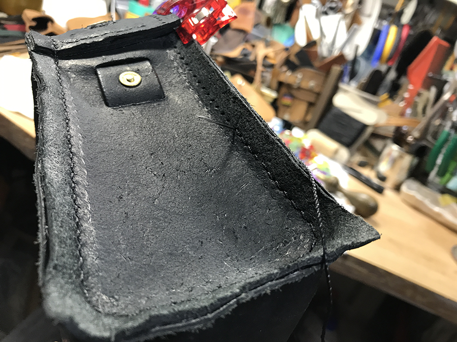 ↓ 革の厚みが2.3mmですので二枚合わせて縫い厚が5mm弱になります
