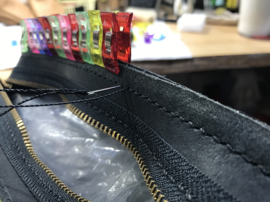 ↓ 僕の作るバッグの特徴でもあるジッパー周りのステッチ縫い