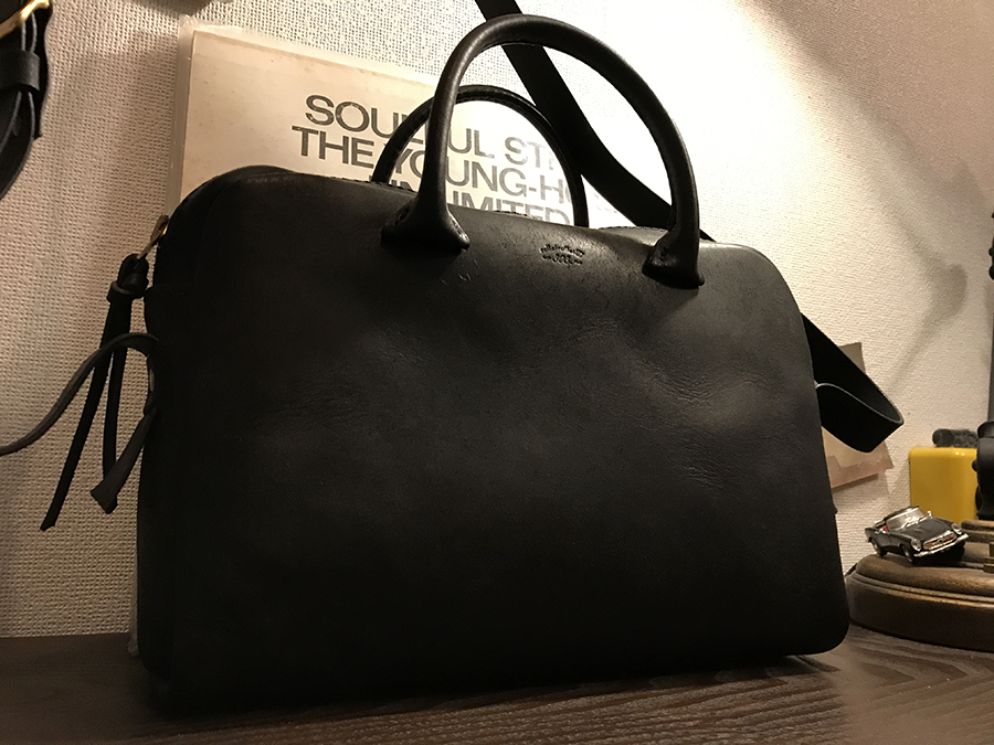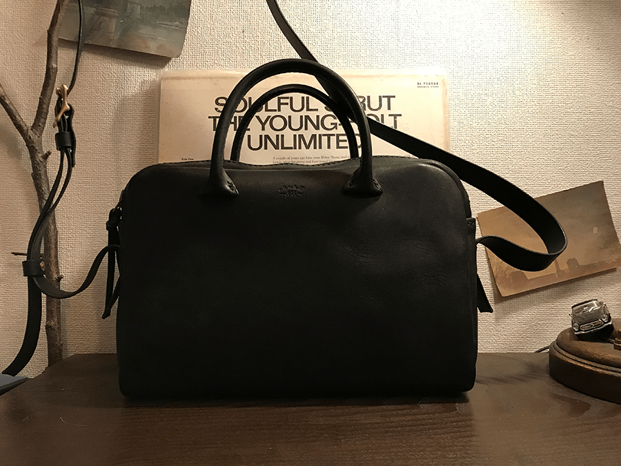 最初は起毛状になってますが「使い込むほど個性が出てきて艶が味わい深いバッグに変化する」らしいです