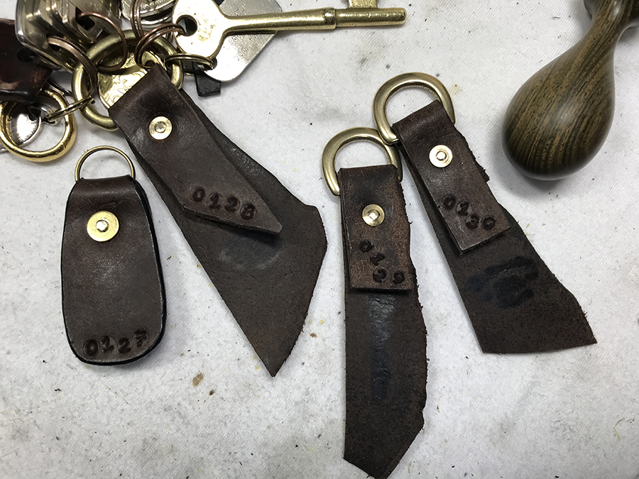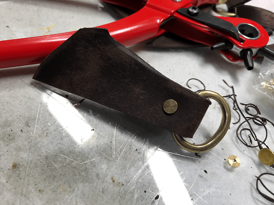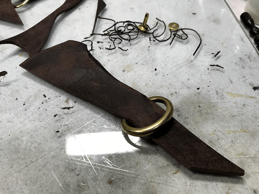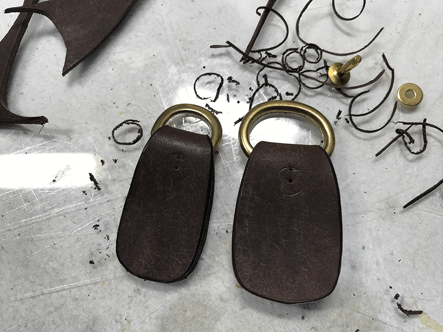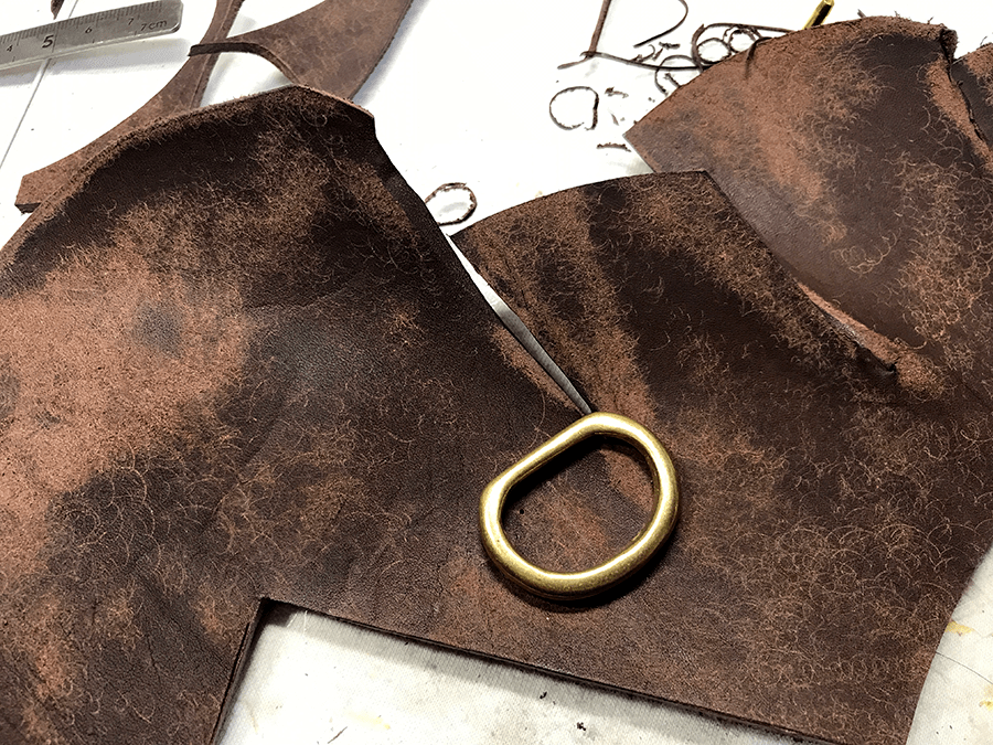 いつもお世話になってるレザーショップで真鍮製のリング(Dカン)を見つけたので、自分用に大きなサイズとサンプル用に小さなサイズを購入。