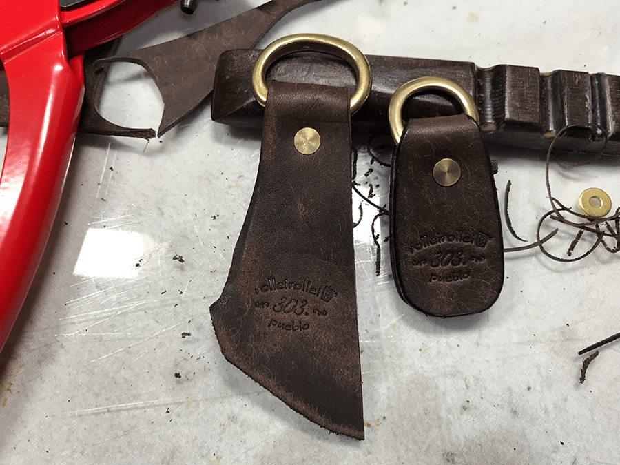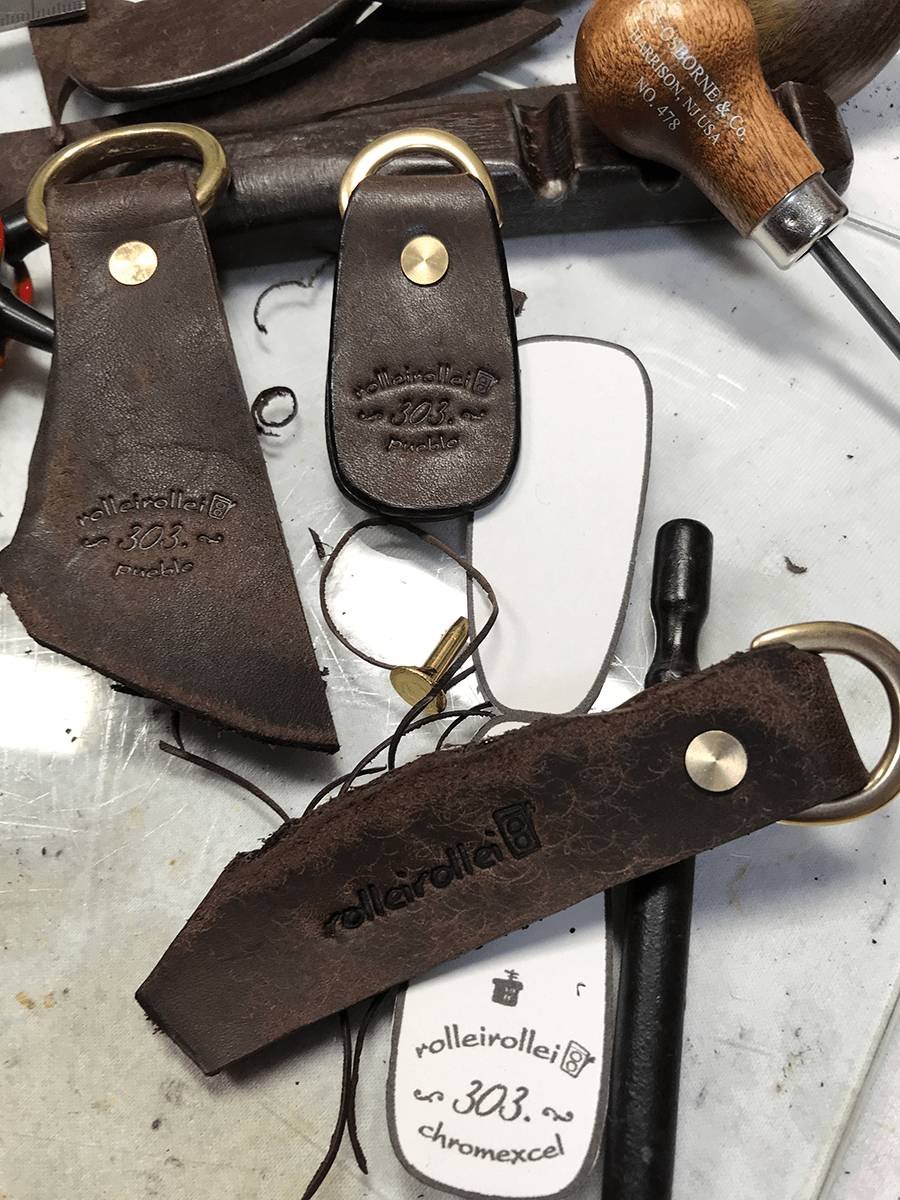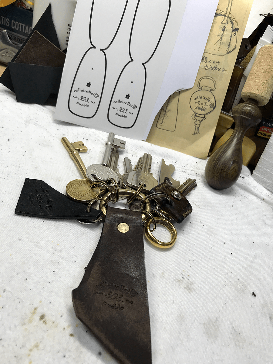 ↓ ここで発想を変えます! 革を半裁(背中側から切り分けてできる2枚の革の1枚分)で購入すると必ず端の部分が様々な切れ端の形に残ります。 この端の部分が好きで「好んでタグにしてます」 だったらキーホルダーにも使いましょうよ♪ です。