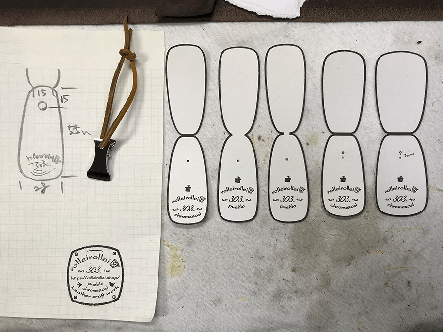 ↓ 折り返してリベット止めにしたいので、あとLot#も入れようとするとしたら長さは必要だから、、、。