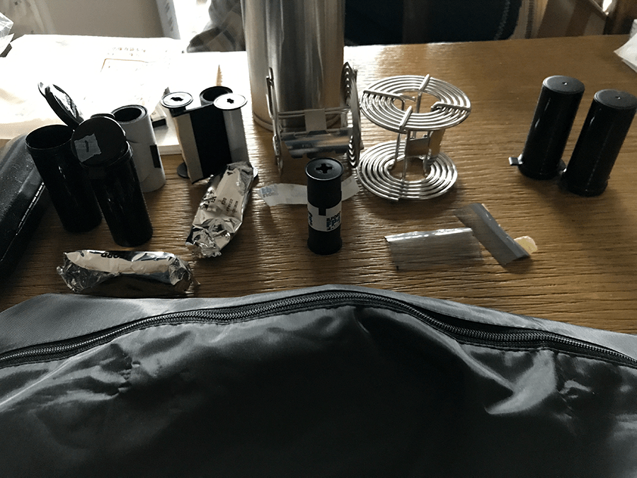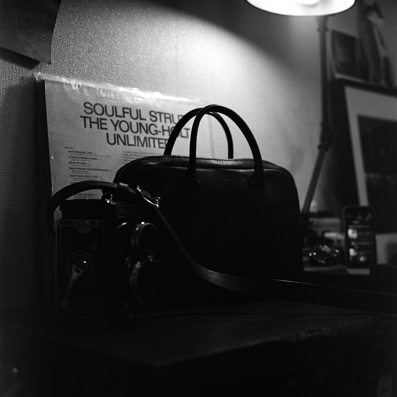 ↓ 深夜に撮ったオリジナルバッグとROLLEIFLEX 2.8C Planerの寫眞