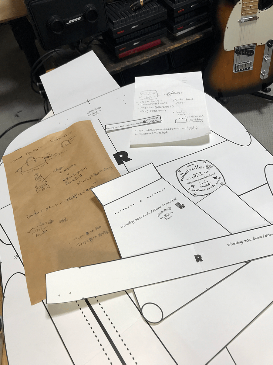 バッグ作りが久しぶりなのでkudu革のストーン色は次回にしました。 型紙からイメージを起こしてるので試作品を作ってみます! お色はビターチョコレート♪ この革もkuduのストック品です。 作り方のノートとか一切無いので、思い出しながら順番にパーツから仕上げていきます。
