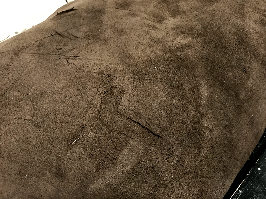 野生種しかないkuduなので傷は多めです。血管の筋跡なのか傷なのか?型取りが難しいです。スエード面を内側にして作る場合が多いそうです。僕はいつもスエードを表面にしますけどね。