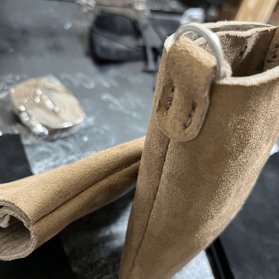 使用したkudu革のブラックが最高級すぎました!厚みが2.5mm以上もあります。 それが3枚重ねてあるので、、、。 ひっくり返せない! 予想はしてましたが相当苦労して指痛くして。結果思ってたより小さくなるんだなこれが。