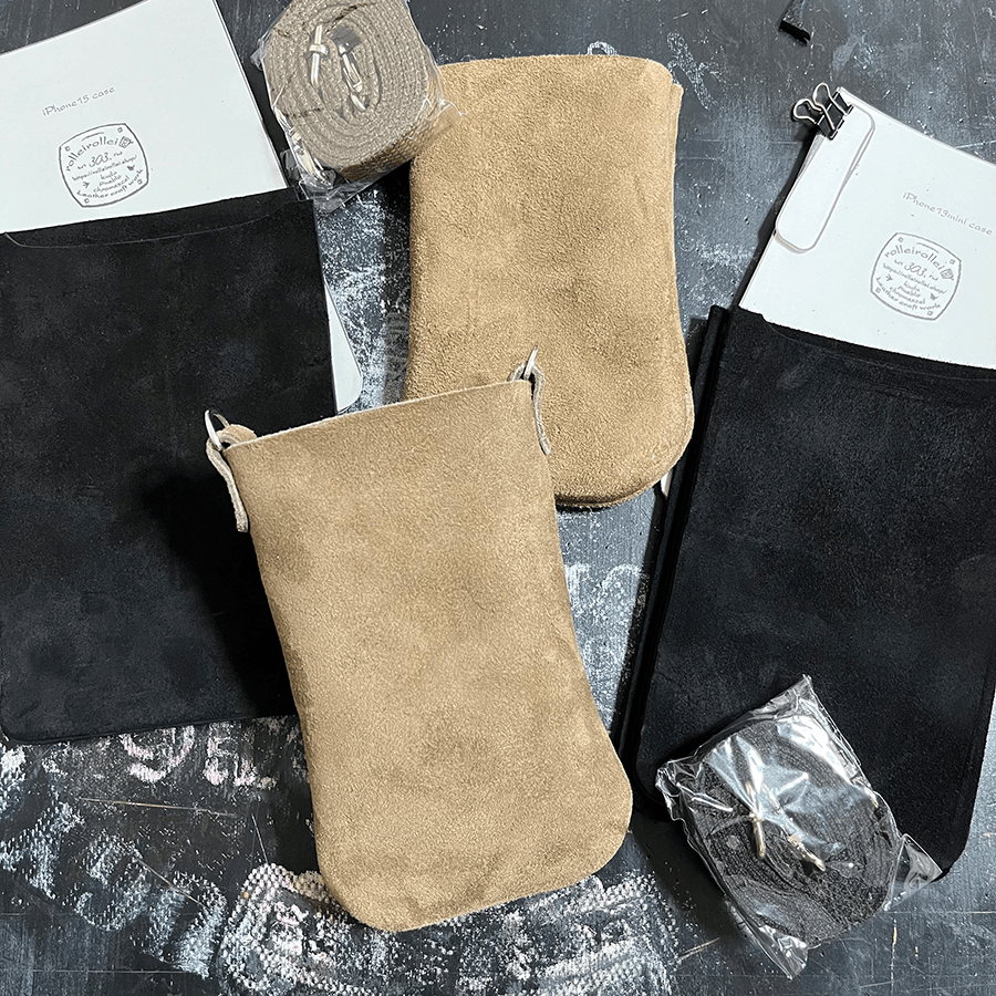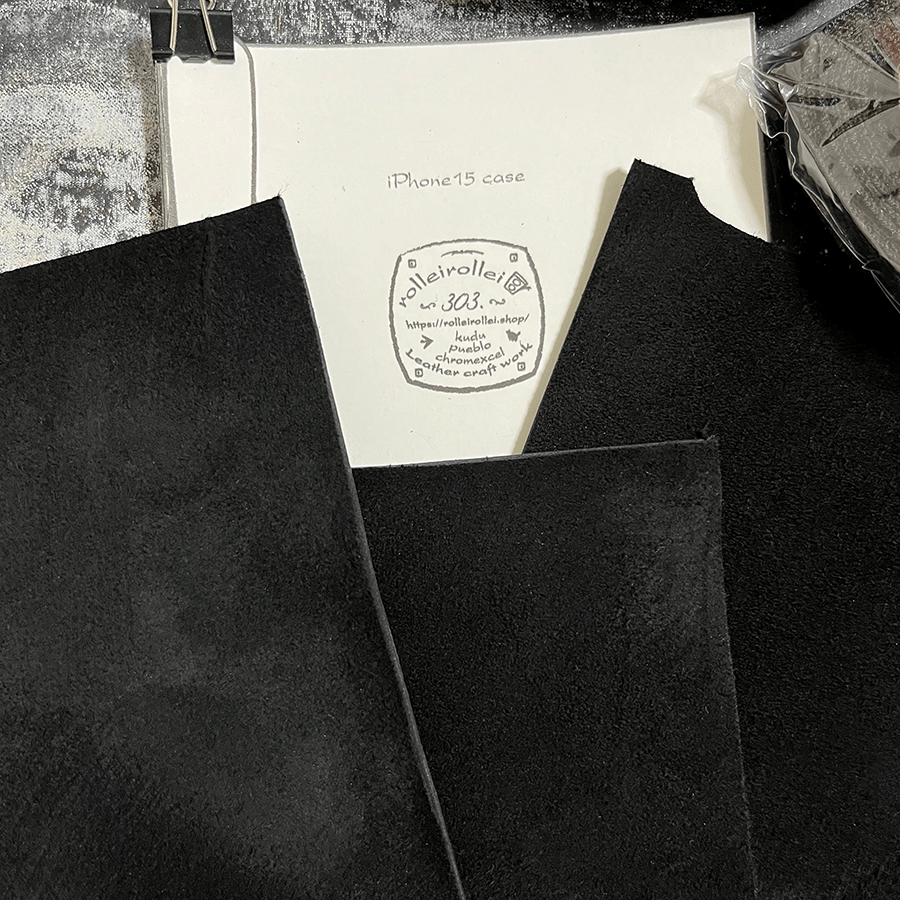 今回はiPhone15用と13mini用を切り出します。世界のスエードなので失敗できません。