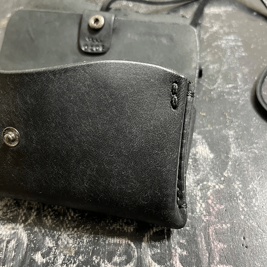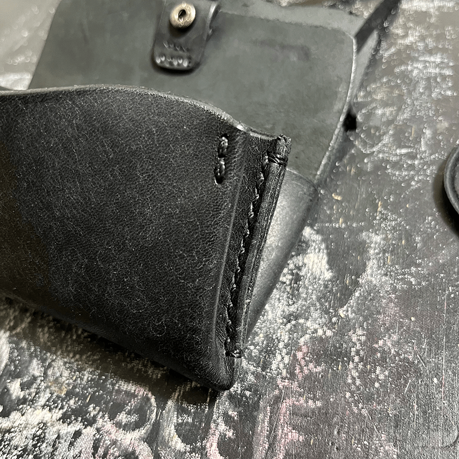 財布のフォルムを崩さないように、縫い目が邪魔にならないように、そんなことをイメージしながらギュ〜っと縫います!