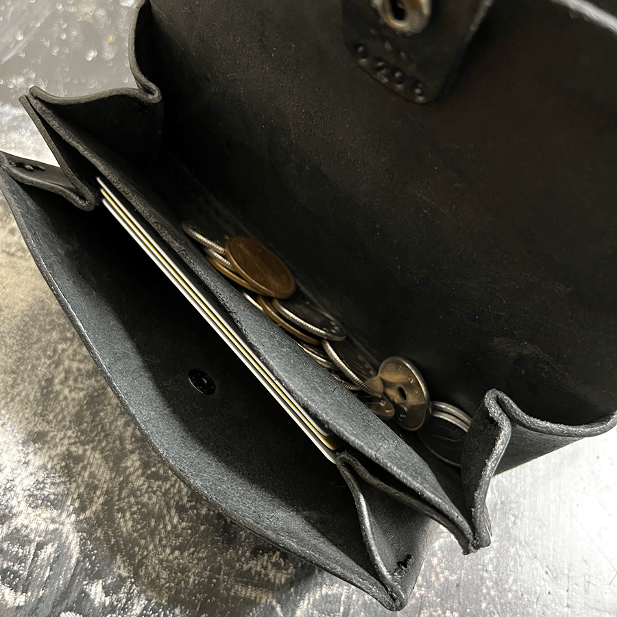財布の閉じ方は「紐締めタイプ」と「ボタン引っ掛けタイプ」があります