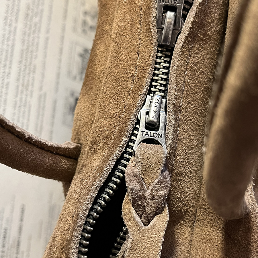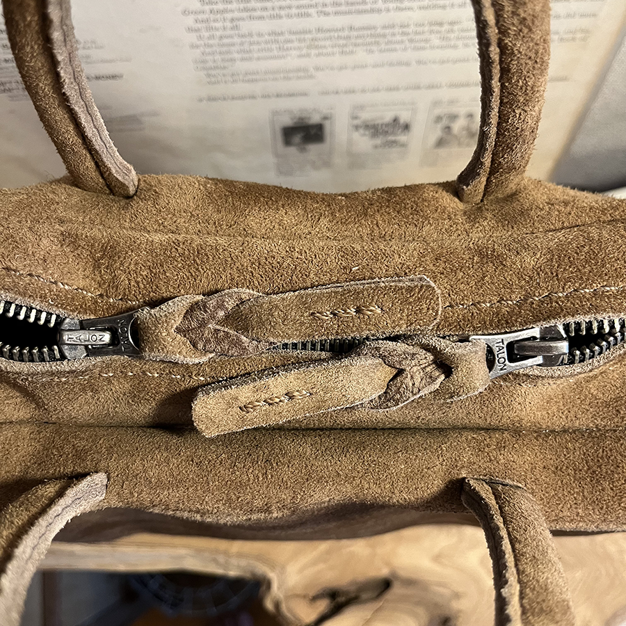 このバッグは持ってて「何か良いんじゃない♪~」 そんな気分になれる大好きなバッグです。 僕のだけダブルジッパーなんです! ビンテージジッパーのTALONでジッパーだけで4000円はしたかな。 片方からしか開けないんですけどね ^^;