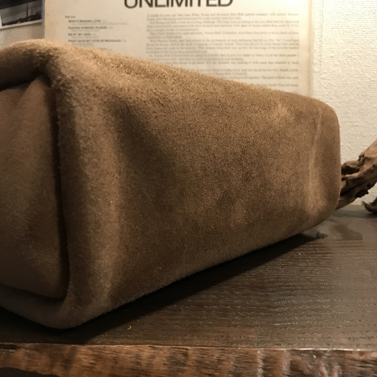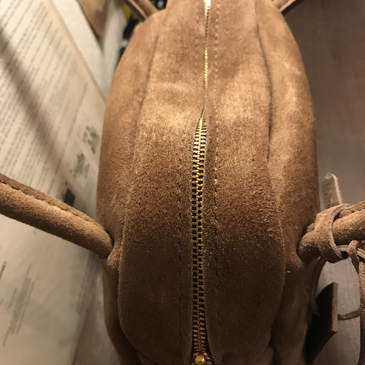 ご紹介するバッグとても人気があるカフェオレ色のkudu革スエードバッグです。 ストーン(STONE)という色で東京にある有名店のオーダー色だそうです。つまりどこでも購入できるわけではない最高級品の本革です。 このカフェオレ色、、、ストーンは購入するたびに微妙に色が違った革が届きます。タンナー製造過程(ロッド)でカフェオレ色だったり、少し黄色がかったり、灰色だったりします。