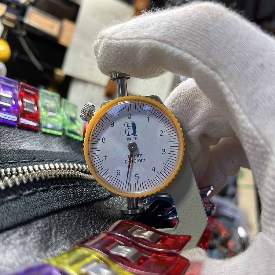 スエード面を表にしてますが革としてはとても弾力のあるしっかりとした張りがあります。貼り合わせた状態で5.5mmあるので手で縫い締めていくのに苦労しました。