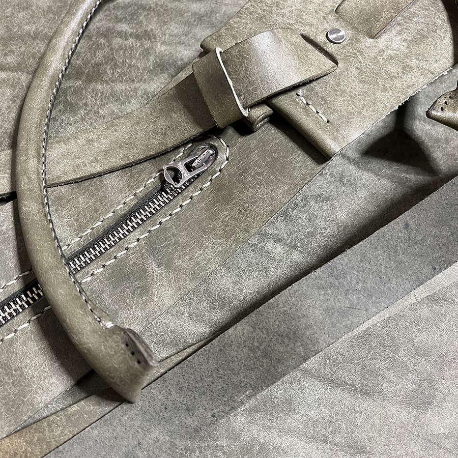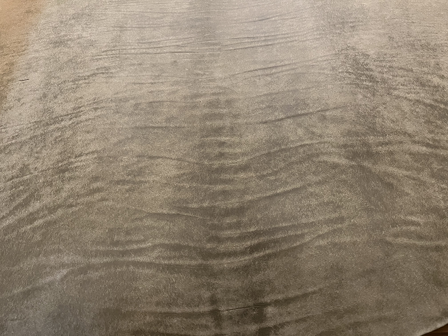 今回は自分用としてプエブロレザーのグリージオ(Grigio)という色で作ります。 この革は購入店様の倉庫見学をさせてもらった時に見つけてしまった革。 後ほどお伝えしますが「泣きたくなるほどの保管ミス」となるわけですが、バッグの面がこんなだったら、、、と想像してしまったので作ってみよかな♪と。