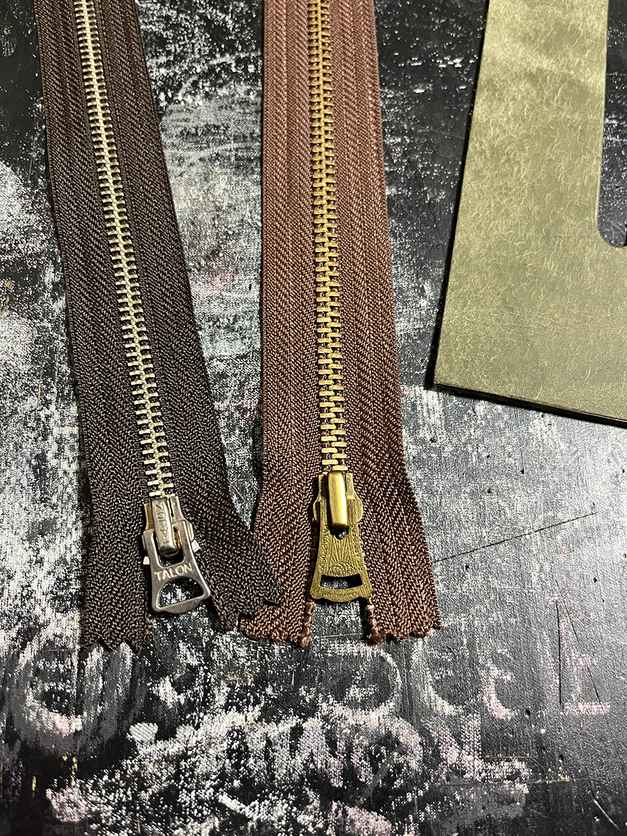グリージオという色に合うジッパーの帯色はこの2色だなと思う。 自分用なので、というかこの後で起こる現象に自分用にしかできないだろうこのバッグにどのスライダーヘッドを選ぶか?