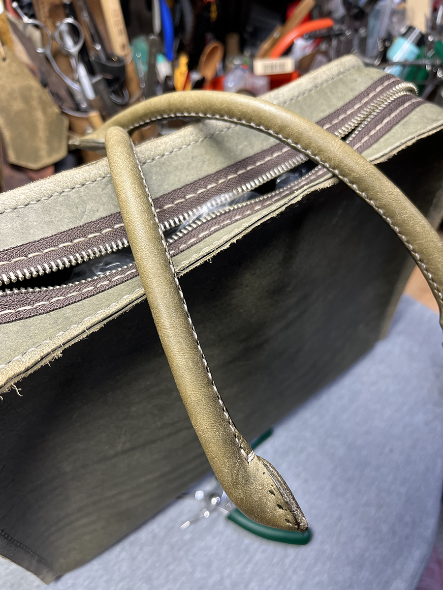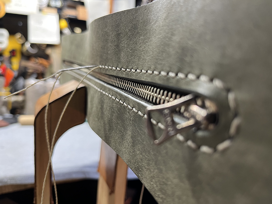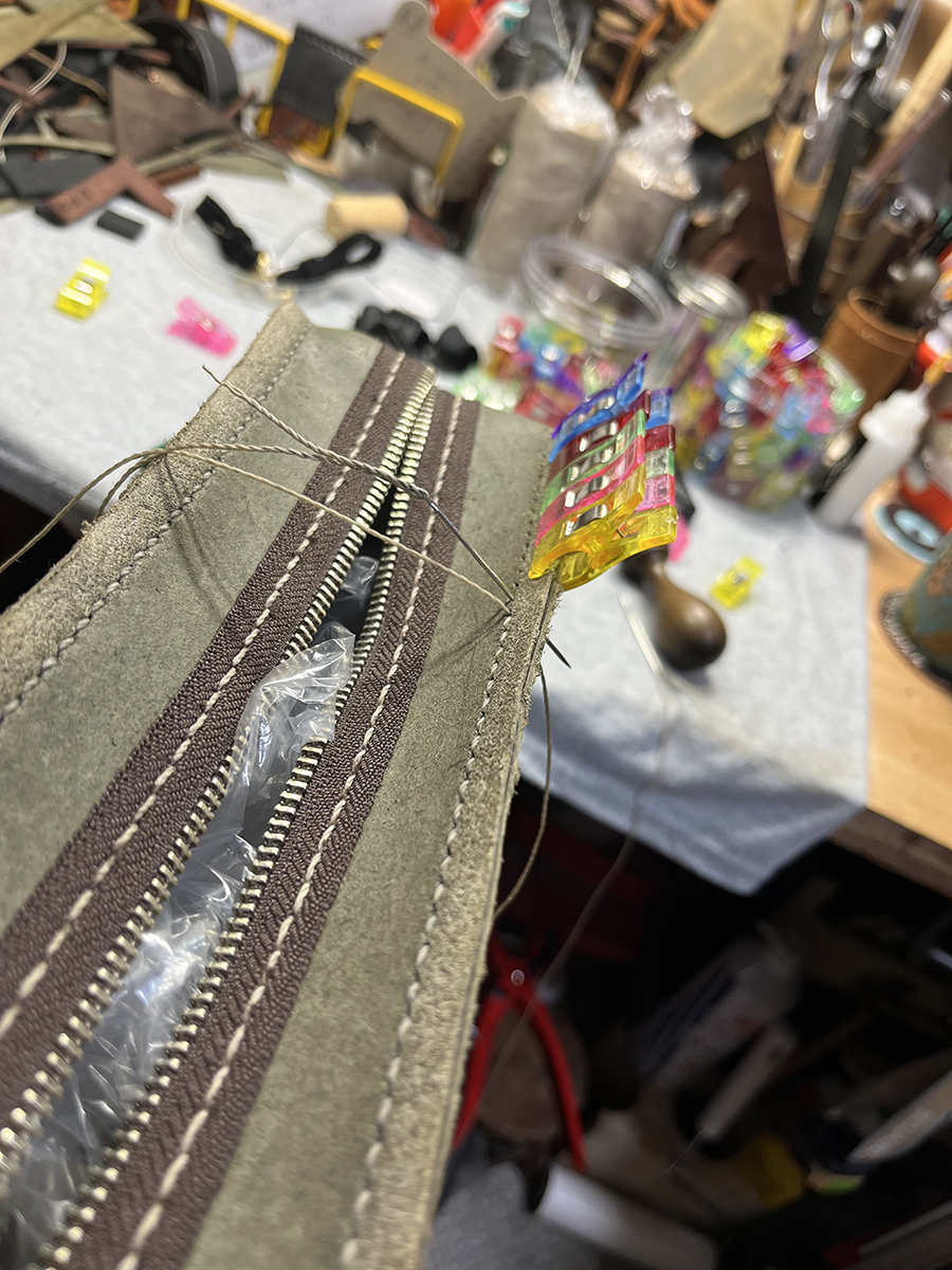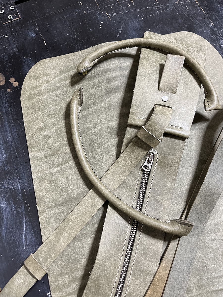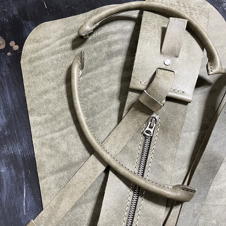 持ち手完成。 次はジッパー選び。 特注のTALONニッケルシルバーかそれともビンテージか。