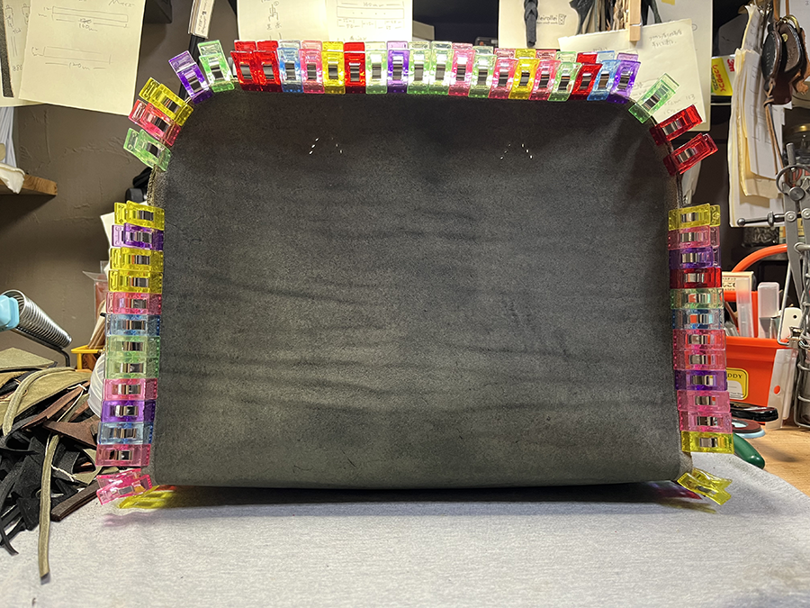 ん? いつもより波打つんだけど、、、。 アカンって。 やっぱりこの革は難しいぞ〜。