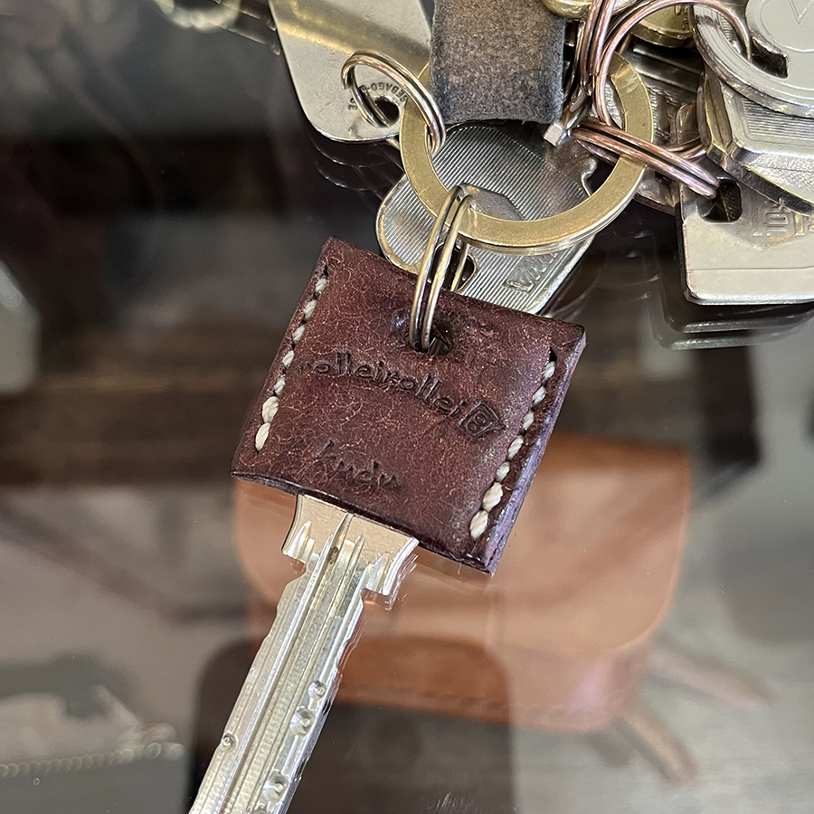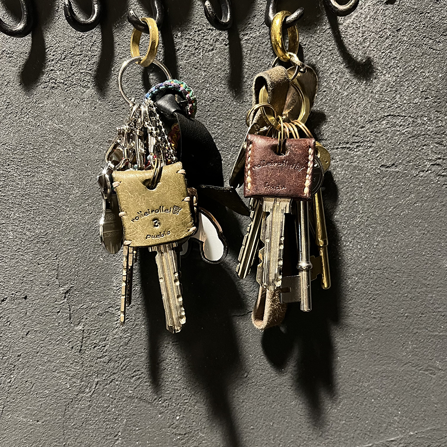 幼い頃から、それも幼稚園児から鍵っ子。 いつもクビに鍵をぶら下げてた。 だからなのか、、、鍵は自分にとって部屋を開けるだけのアイテムではないような気がする。 たくさんの鍵をひとつに纏め持ちする一方で自覚に入る鍵を1本だけ別に持つ。 夫婦で行動することが多い僕らは「鍵持つ? 持つ! それじゃ持たない。」 そんなやり取りが交わされる。 自宅はオートロック。 自分だけは入れないことがある。 その時に活躍するのがこの鍵である。 kudu革を三結び。 とても気に入っている♪ 入れてる場所は秘密である。