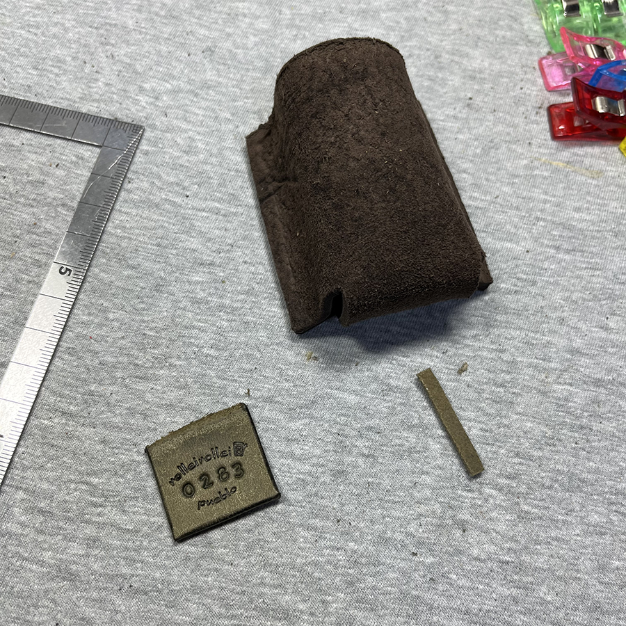 ベルト通しを忘れて取り付けてしまったら、、、。 一度つけたリベットを取ると、取り跡は凹むからそこのパーツは作り直すことになる。 ここで気づいたのは早朝だからだな。