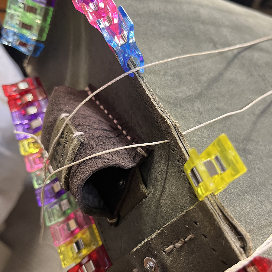 2日空いたかな、、、。 バッグの縫いが始まりました。 もう頑張るしかないっ! 遅れた分は今日で取り戻す覚悟を持って半分まで縫いました。