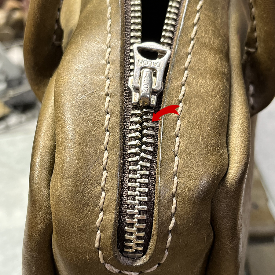 バッグをひっくり返してビクビクしながらジッパーを閉じたら引っかかりました (T.T
