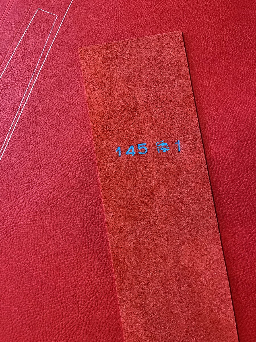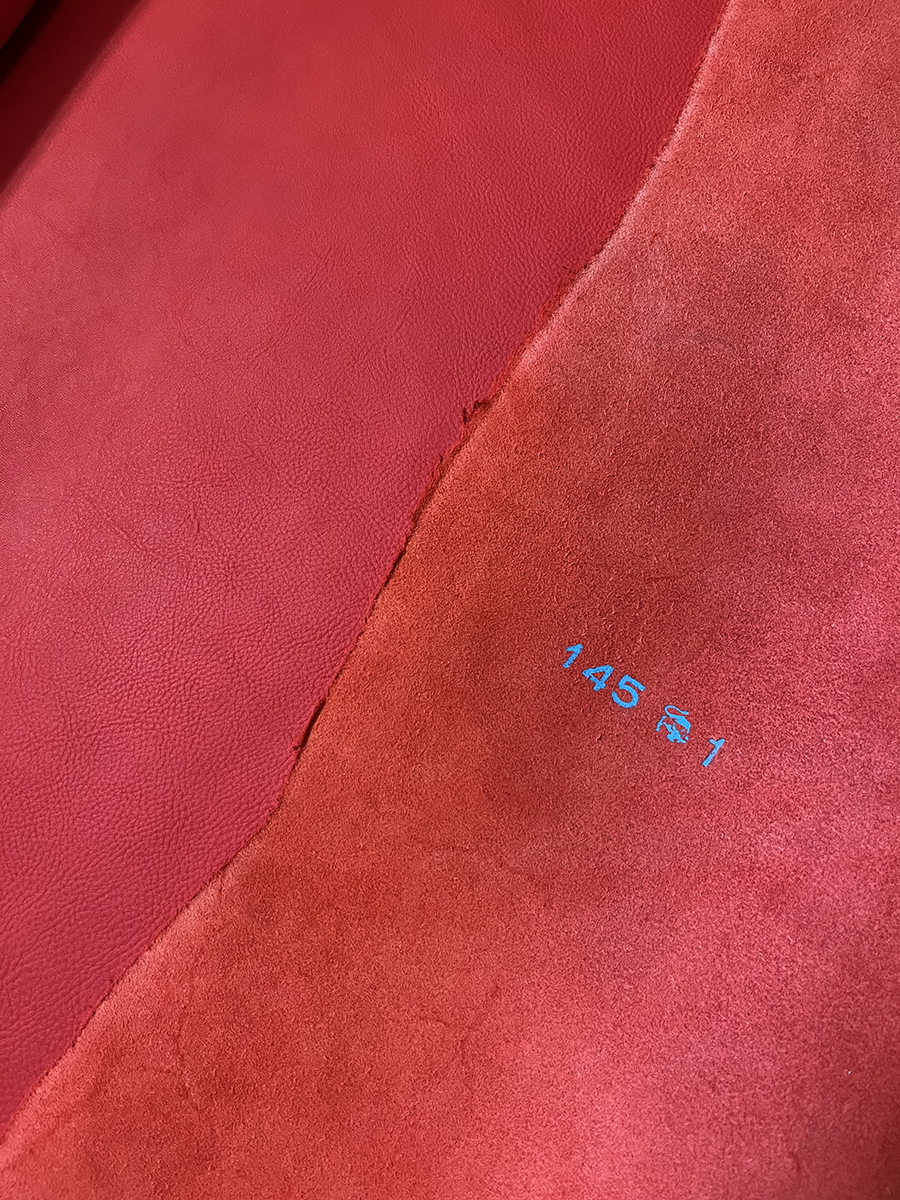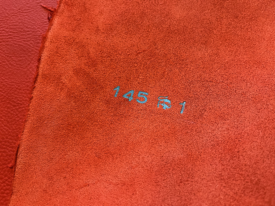 選んだのは上の写真の革で、シボが均等に入っているのを選びました。