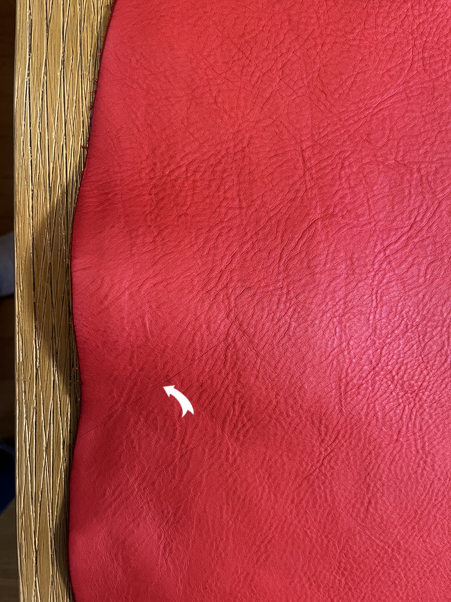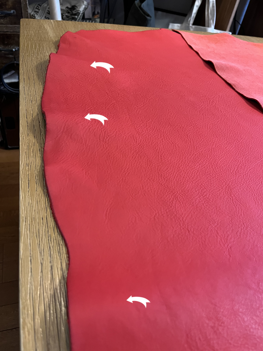 僕の作るバッグはボディーが前後繋がってるので(全面→底面→後ろ面)一枚革ですから、このようなシボの入り方に違いが出ます。 大きなシボの方が柔らかい感触で、細かなシボの方が少し硬さを感じます。 シボが入ってないとさらに硬いかな。 片方だけクニャクニャにならなければ良いな〜。