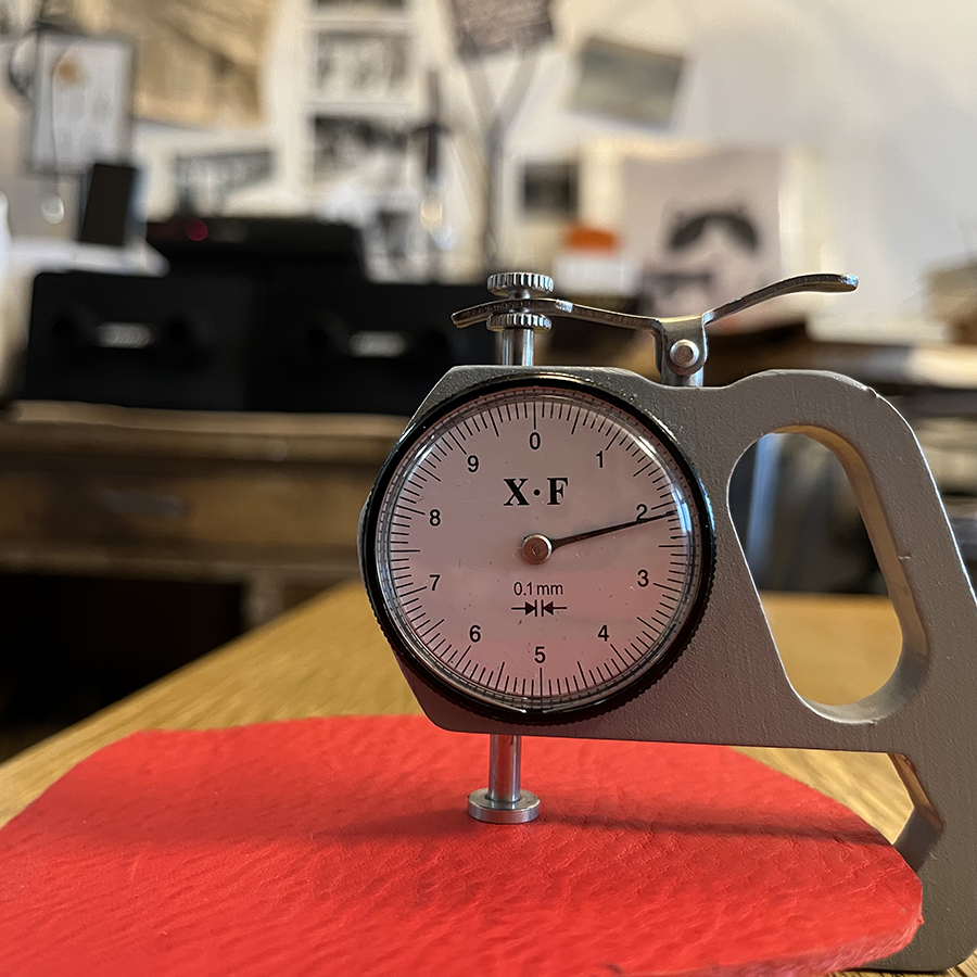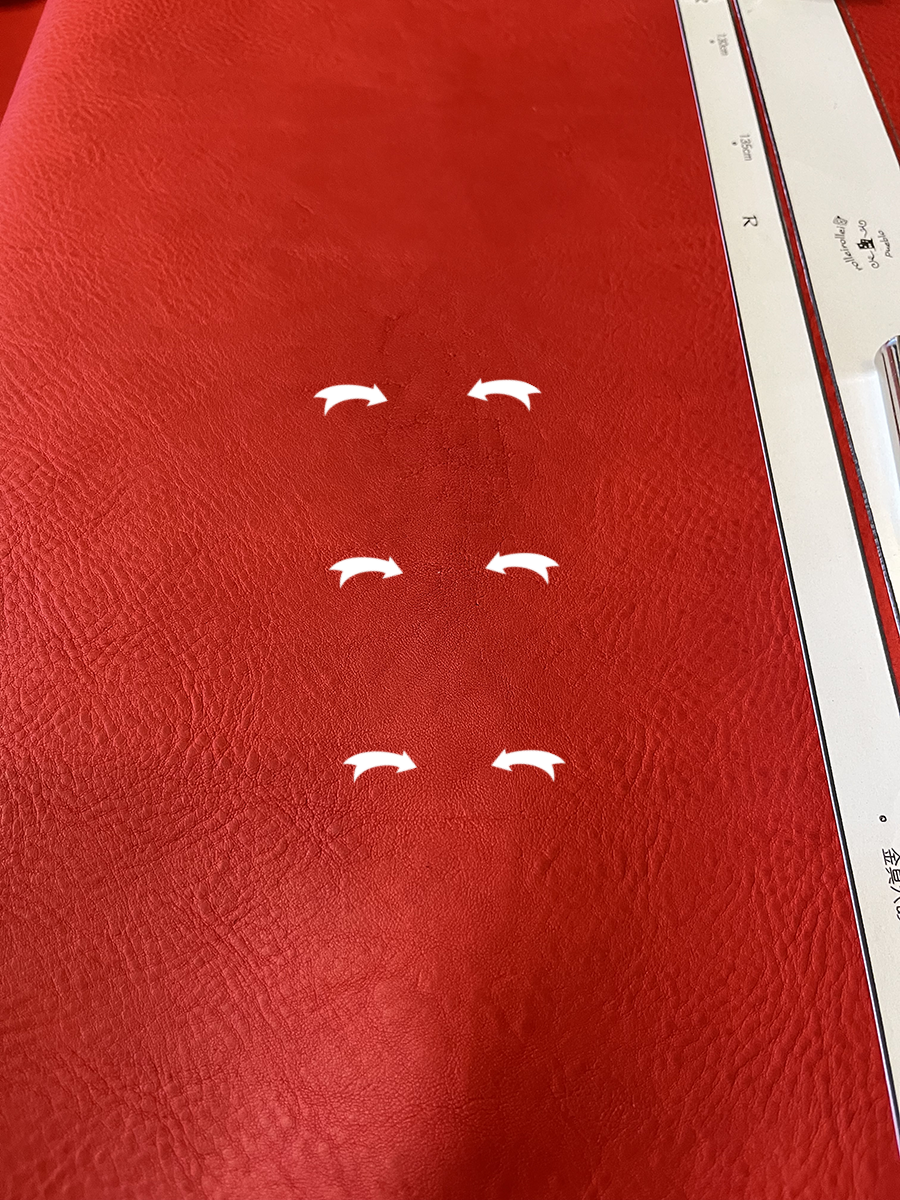 手前の方がどうしても浅目に押されてしまうらしいので「革を180度回転させてもう一度押し込む」と良いらしい。
