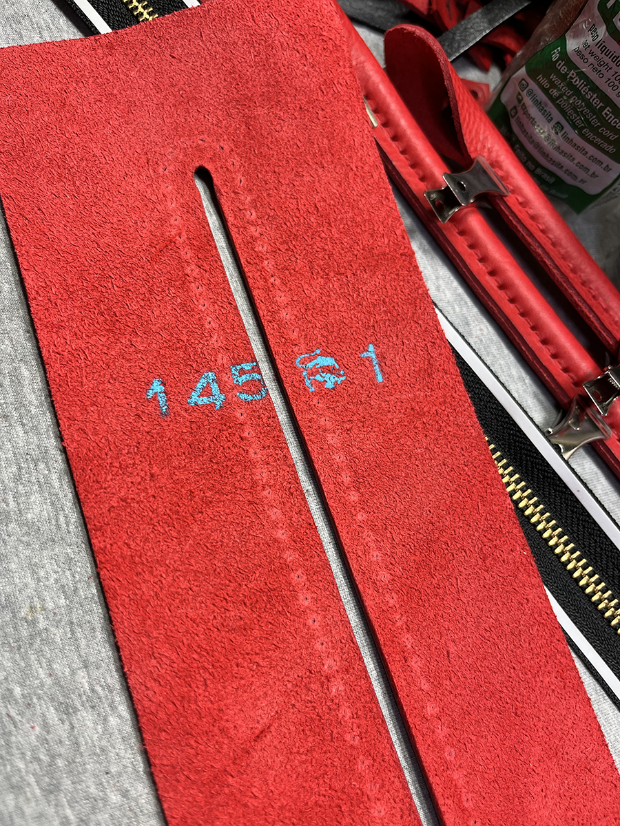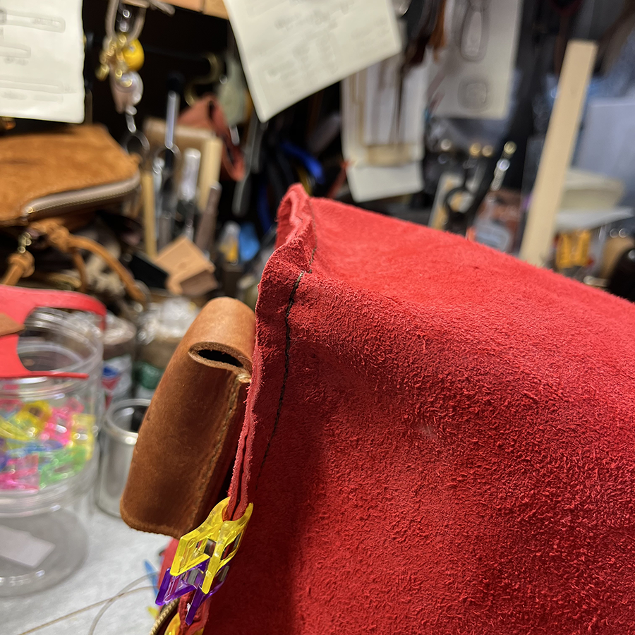 貼り合わせたバッグを触ってみて「ホントにmaiのバッグと同じ革なのか?」