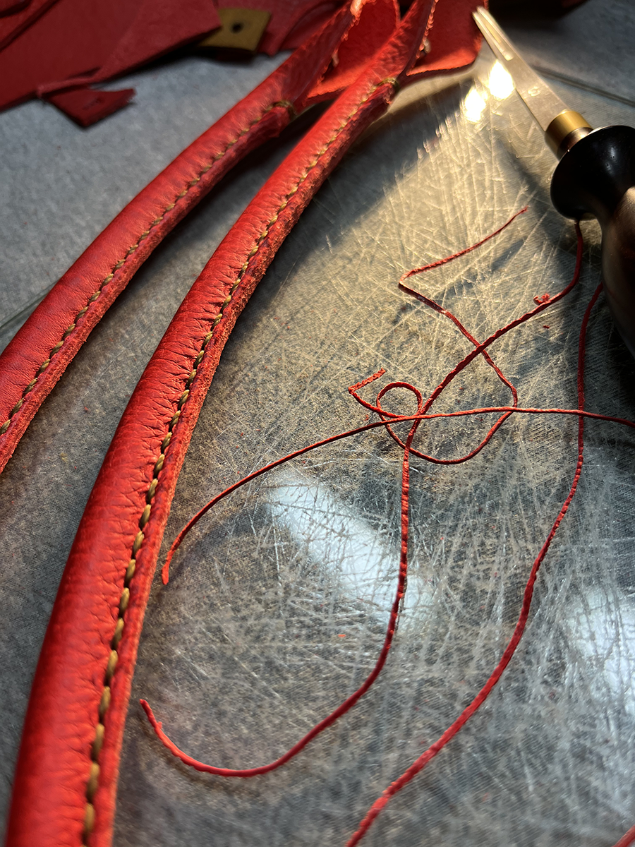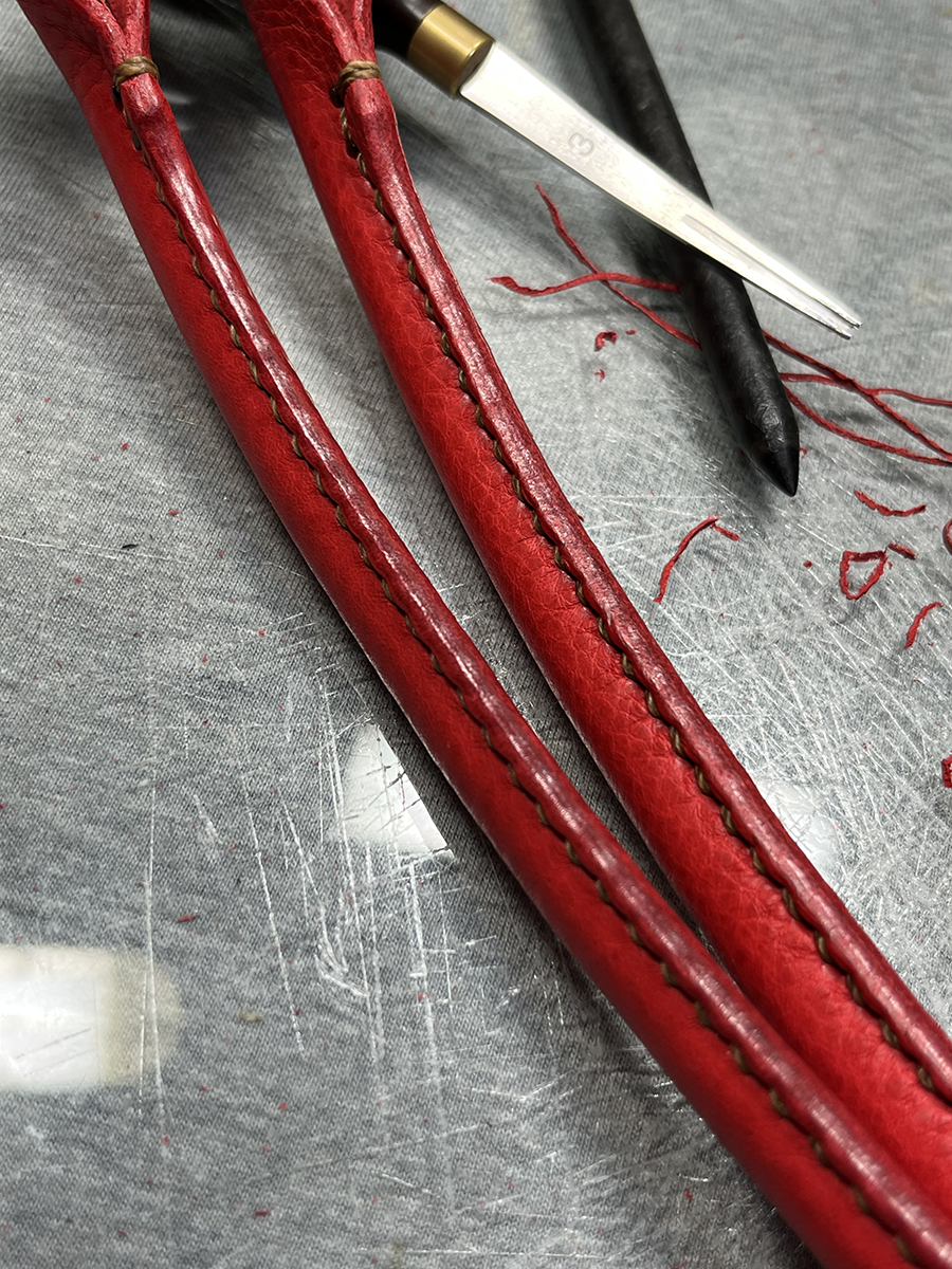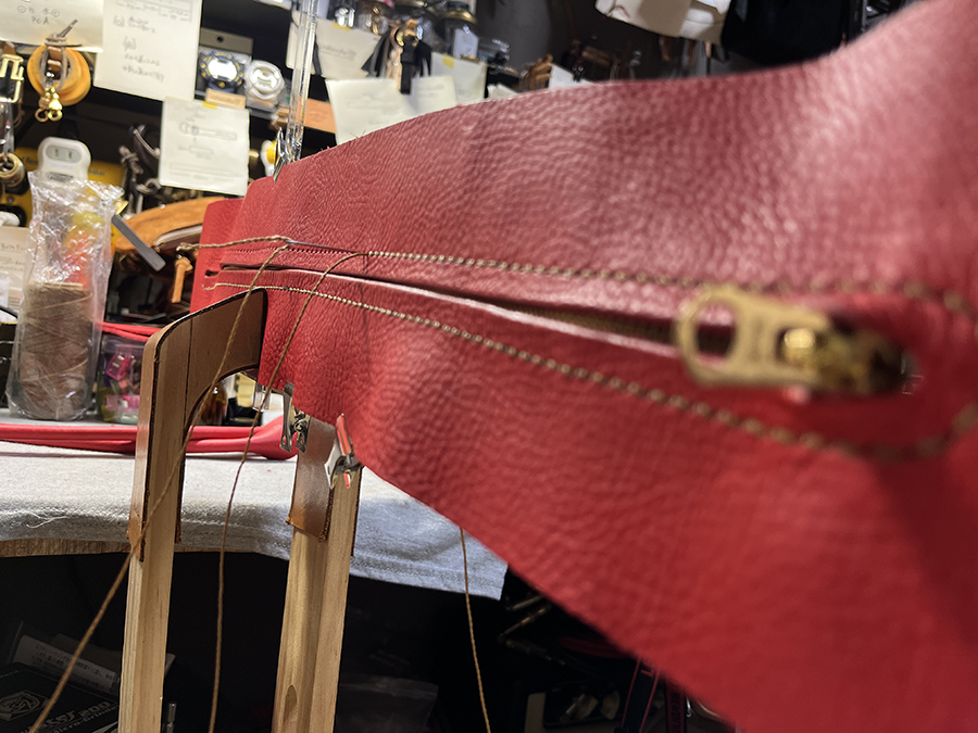 厚みのある革を縫い上げて最後にひっくり返す作業の大変さから逃げ出したい、、、