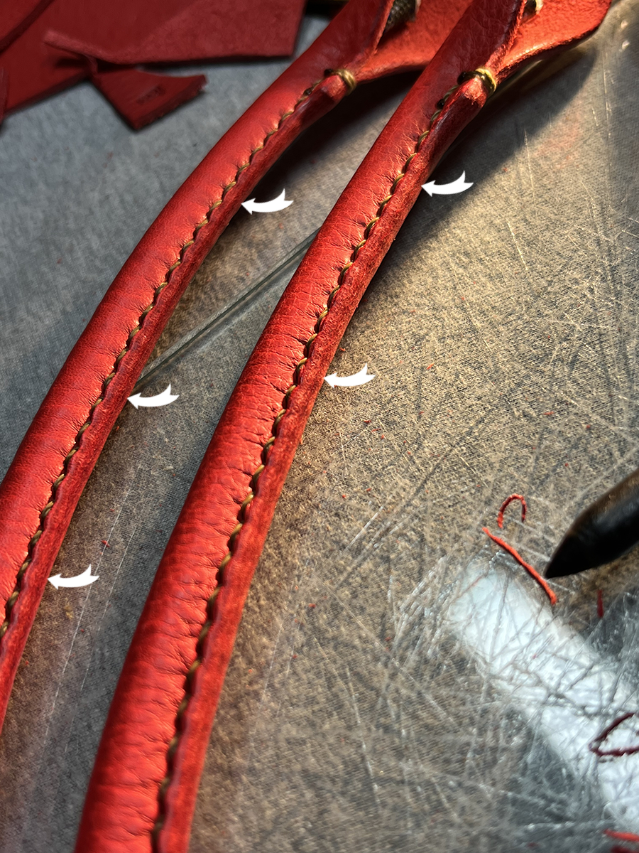 ミシンでは出せない感覚的な仕上がりです。maiのバッグを見れば分かりますよね。