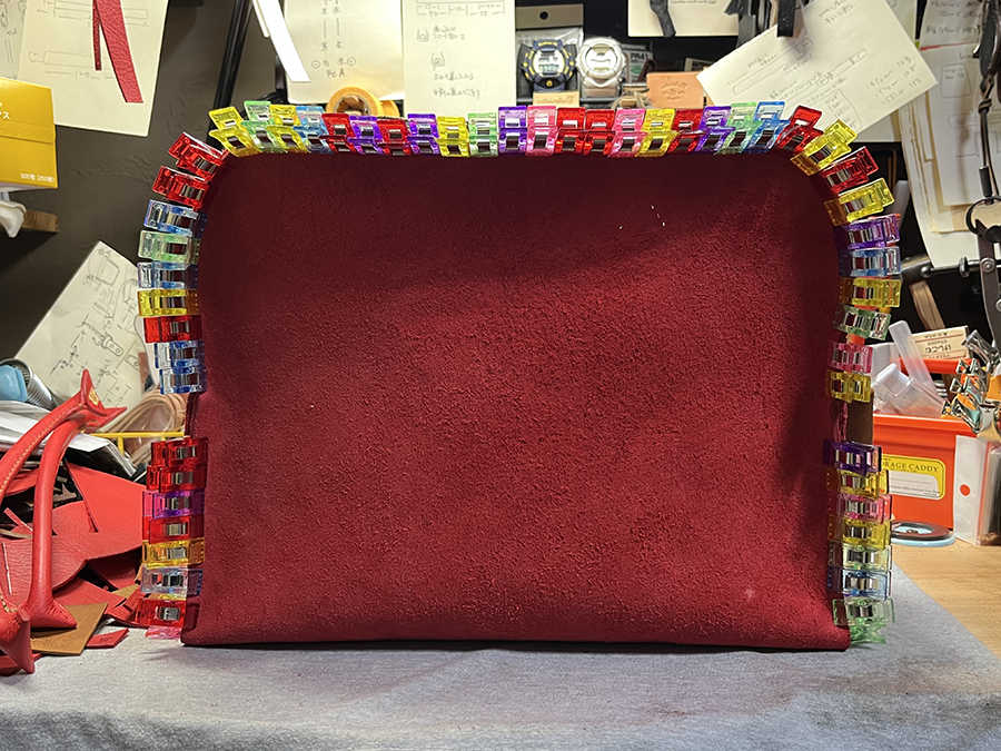 全てのパーツを貼り合わせてバッグのカタチに。