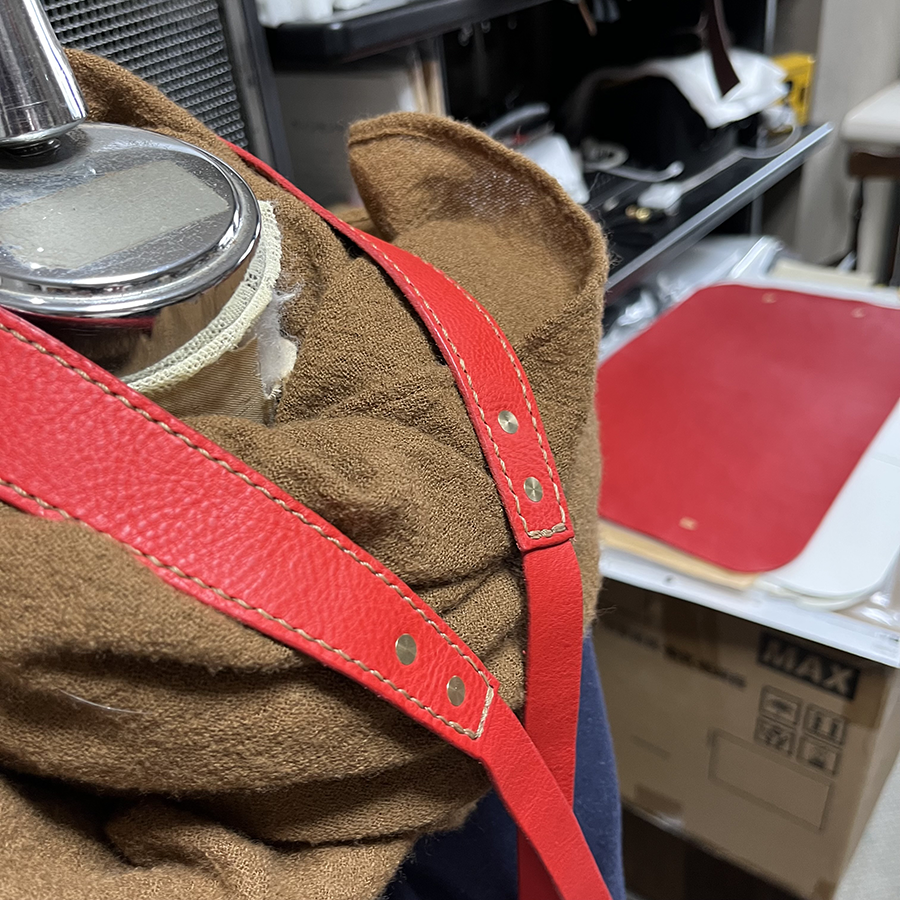 昨日ショルダーベルトのリベットを全て打ち終わり