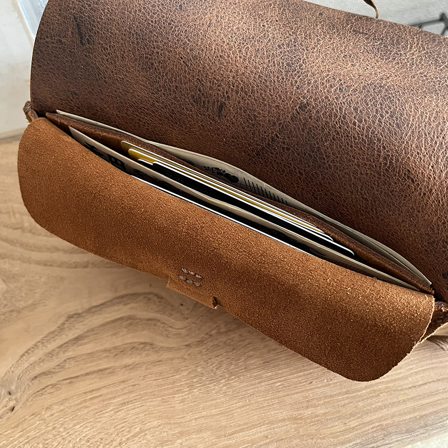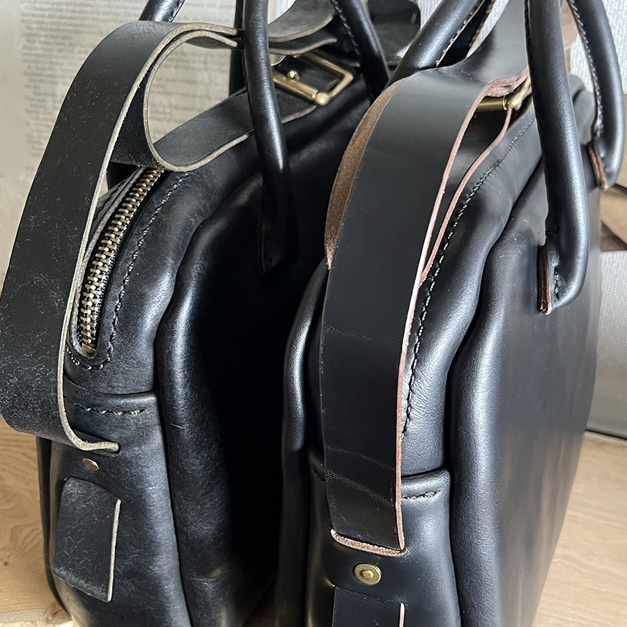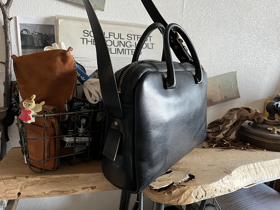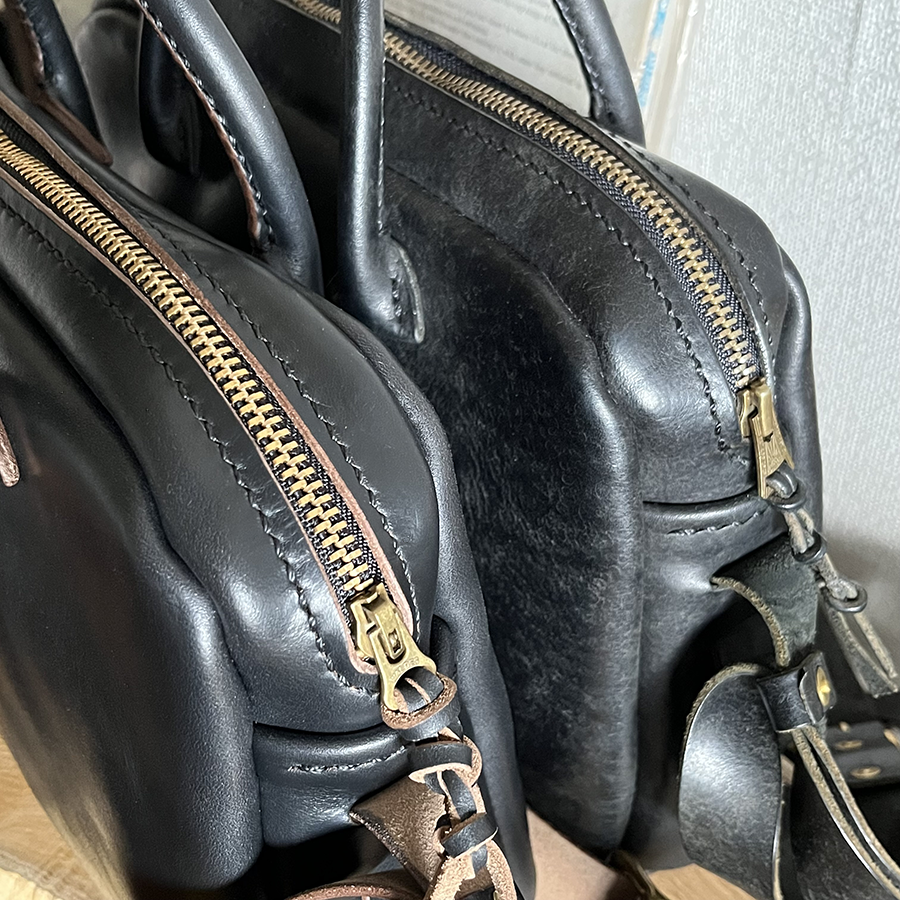 妻のバッグは中の入れる物からサイズを割り出してるのでまさにオーダーバッグ! なんだか可愛いフォルムでありながらカッコイイ! 毎日持ってるのでエイジングも良い感じ。 革も柔らかくなってキズとかすぐ消えちゃいます。