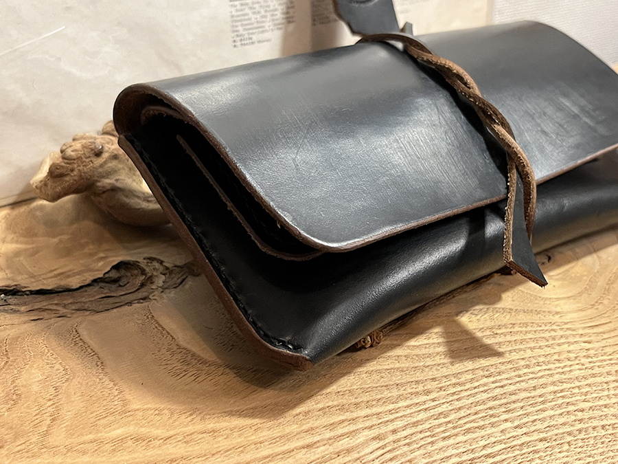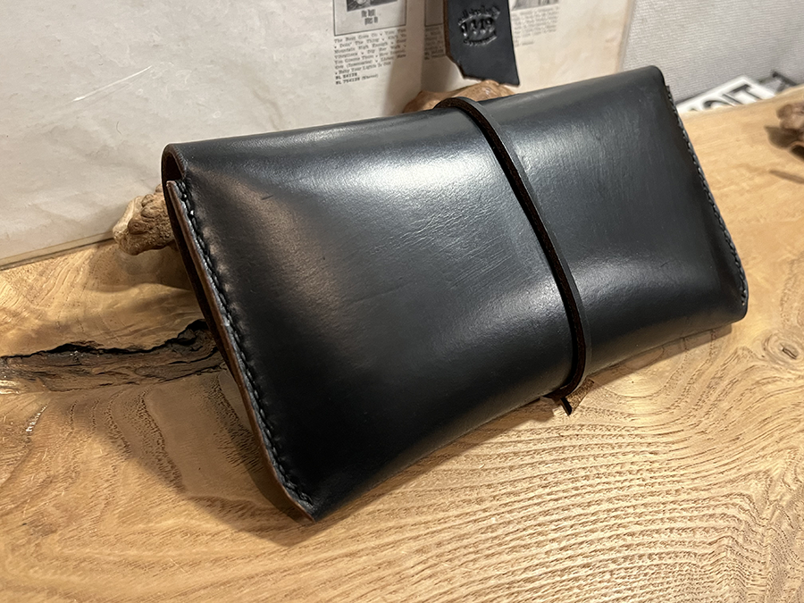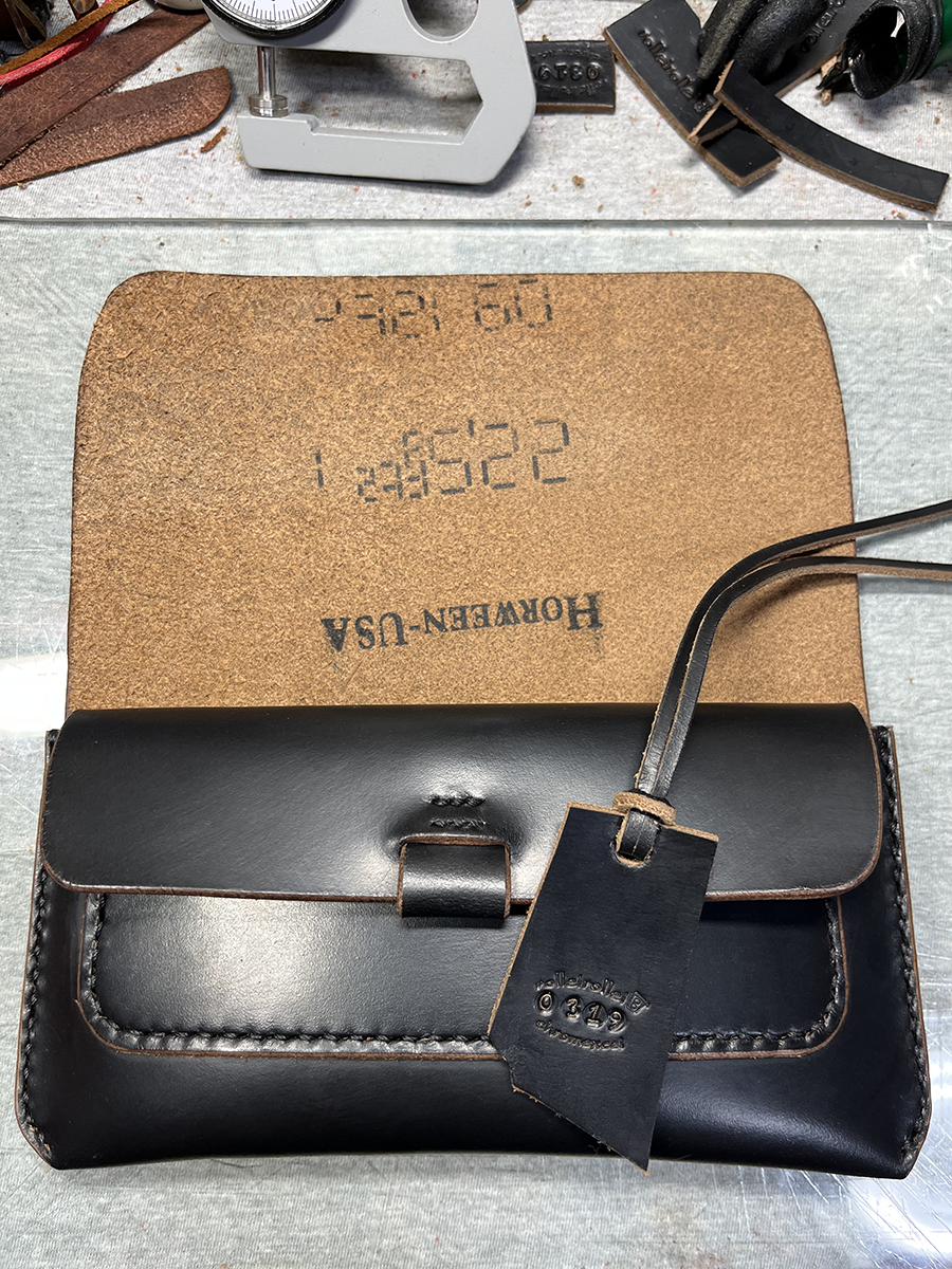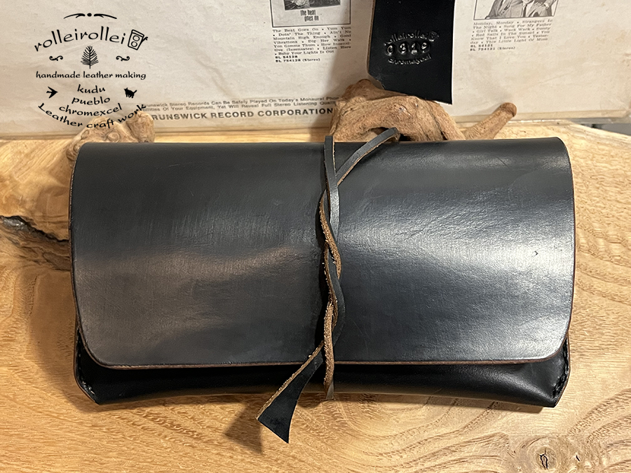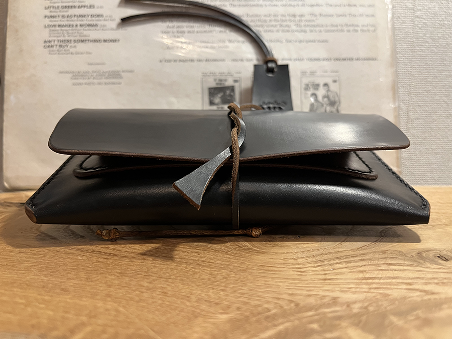 いつもは好んでkudu革で作りますが、今回はバッグと同じクロムエクセルで。 ナンバーロゴもタグではなく直接打ちました。 320個目の作品ということになります。